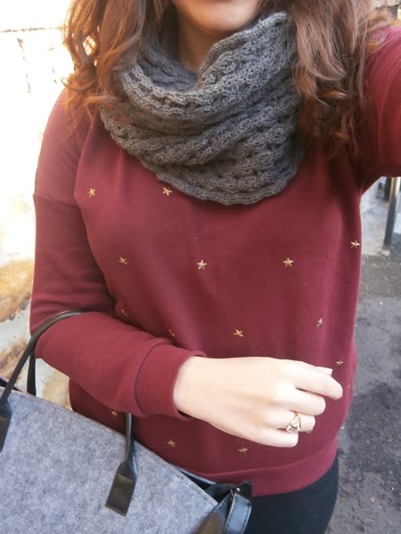 Zobacz oryginał ndz., 19/01/2014 - 20:24Dziś zestaw z bordową bluzą, którą bardzo lubię choć może nie jest to najlepszy krój dla mnie :) Całość powstała spontanicznie. Jakoś wcześniej nie pomyślałam o połączeniu jej z szarościami :)