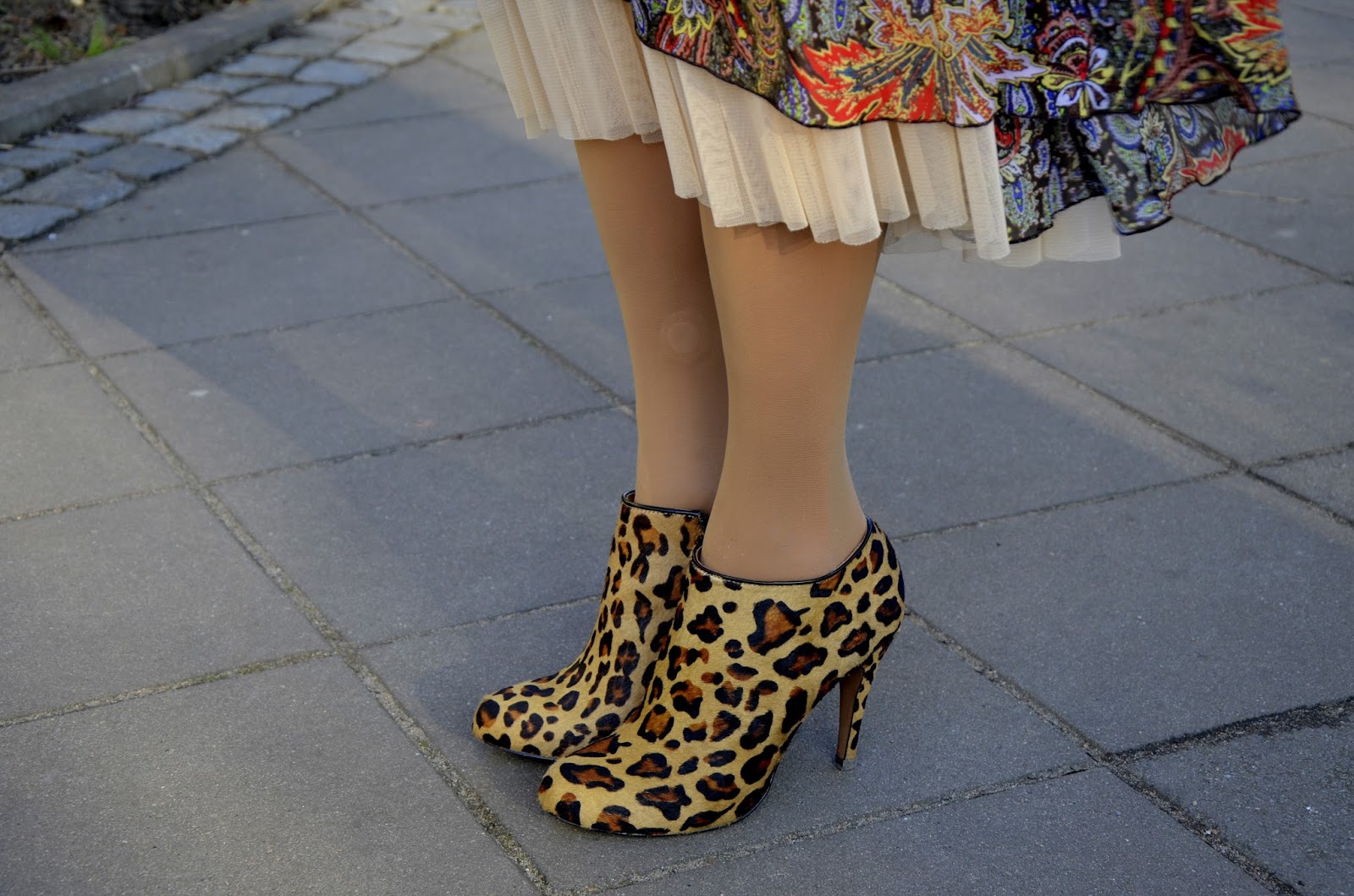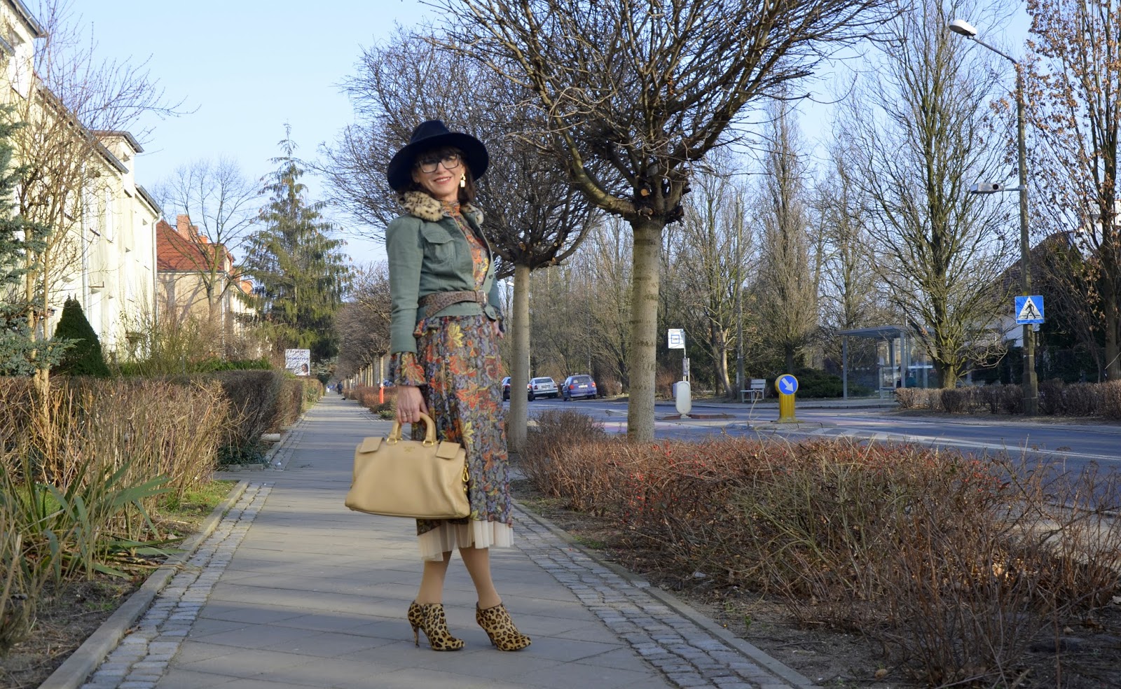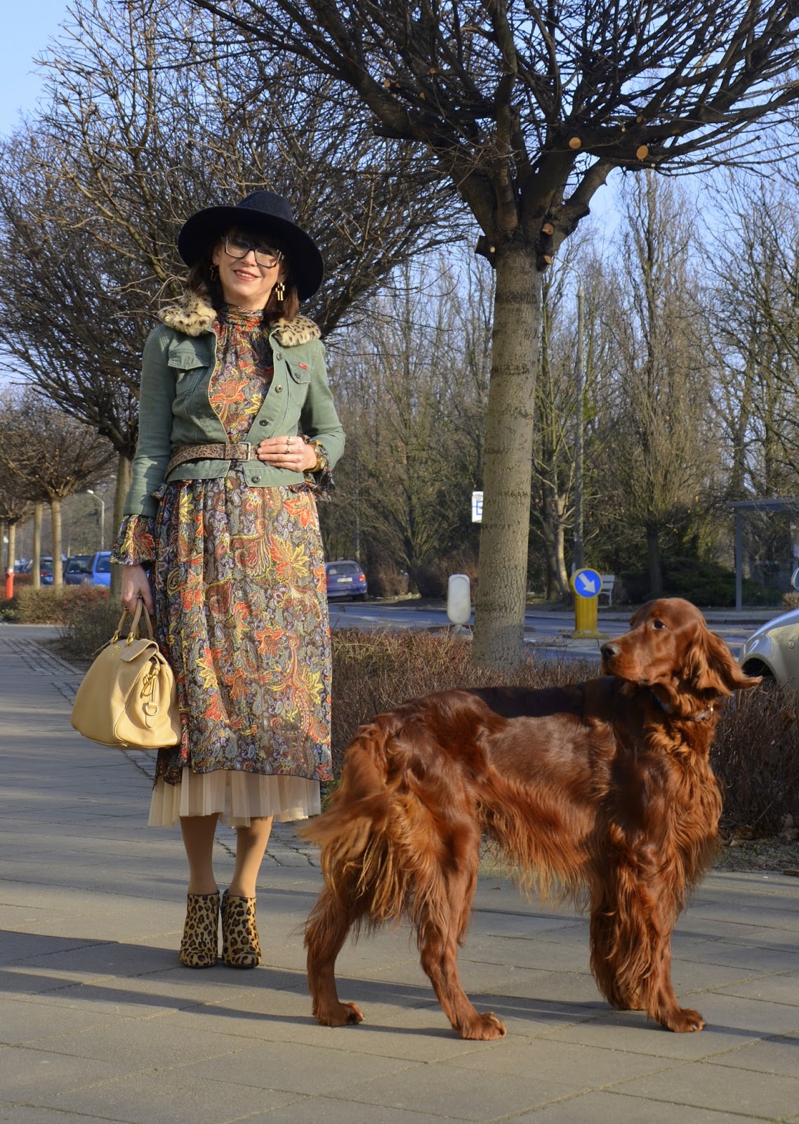 Stylizacja: chcąc podołać wyzwaniu połączyłam wzorzystą, zwiewną sukienkę z jeansem, gepardem i panterą ;) Dorzuciłam kapelusz, który ostatnio nabyłam za 15 zeta. A, że u Cavalliniego ważne są warstwy, dorzuciłam spódnico-halkę.