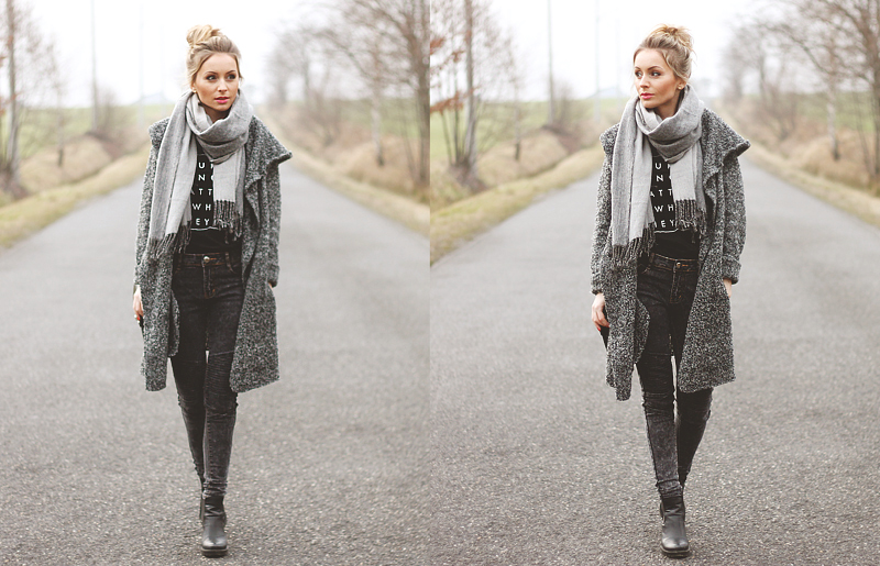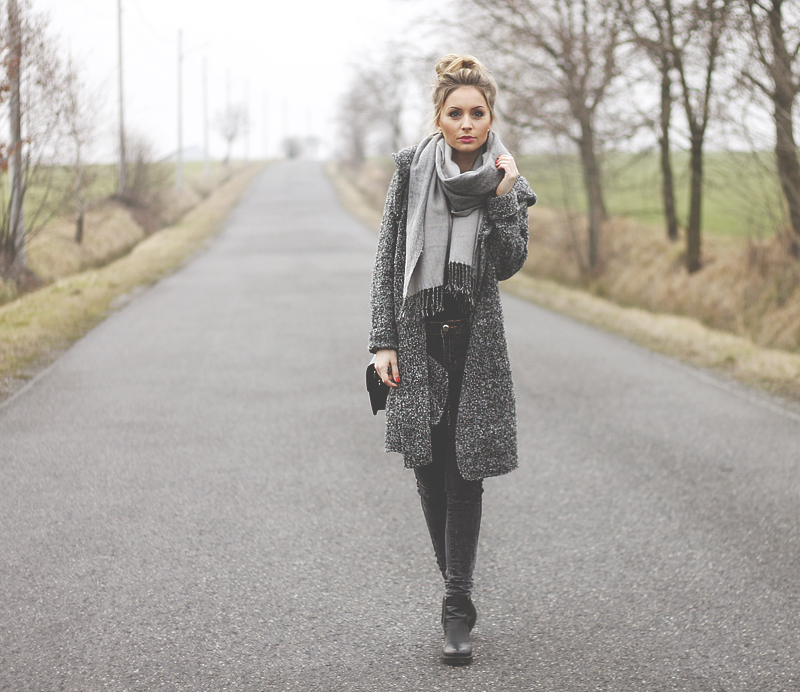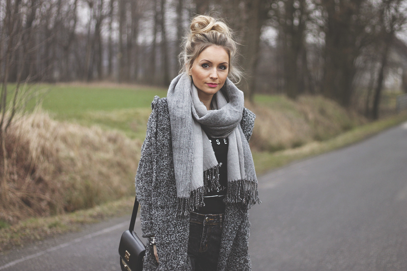 płaszcz - H&M szal - H&M top - Reserved Spodnie - Zara torebka - Monnari
