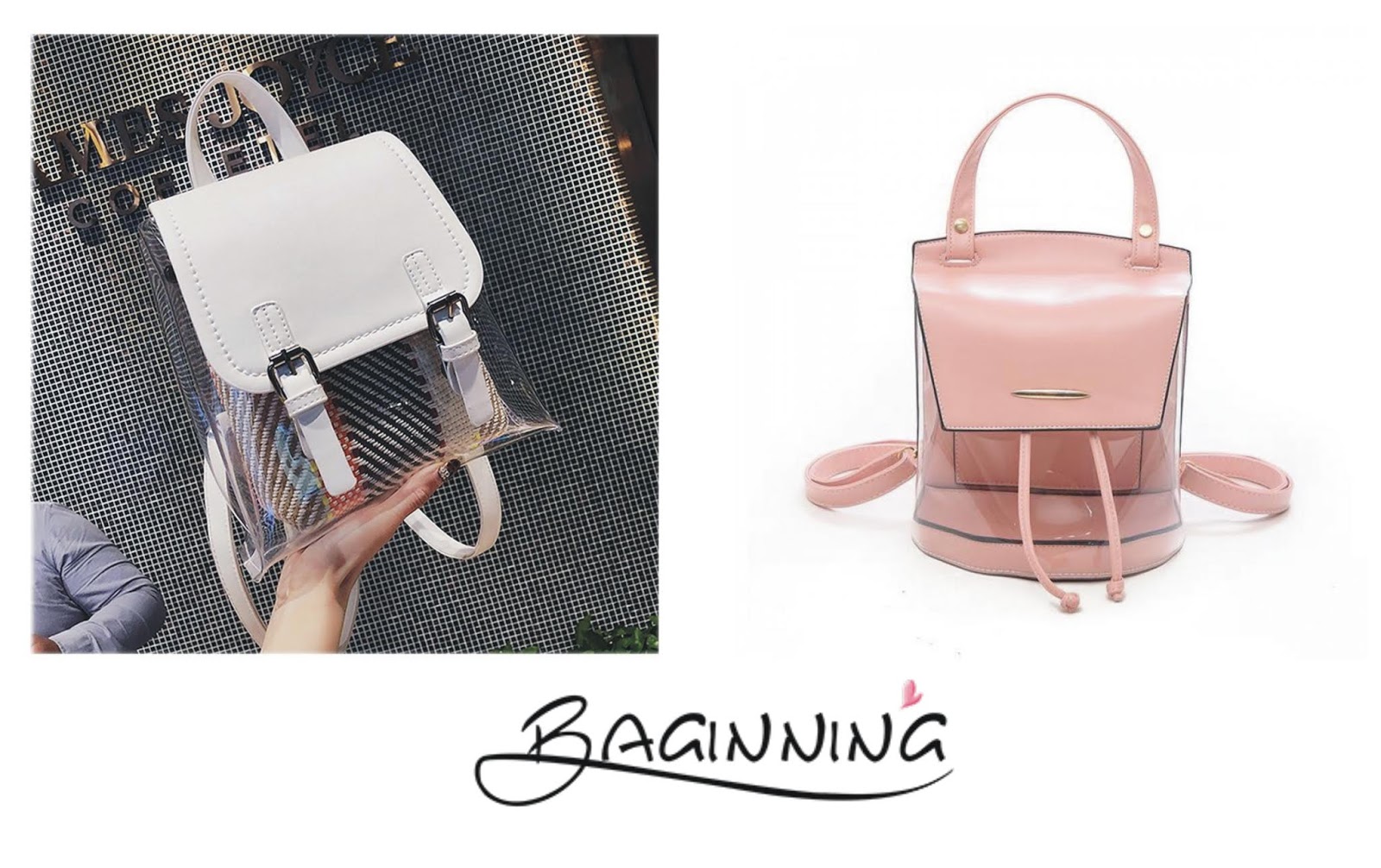 I choose some propositions of clear backpack from Baginning and it's a classic black and white lements and of course there is also a transparent backpack with pink elements.