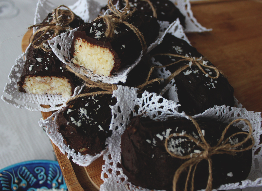 Batoniki kokosowe.