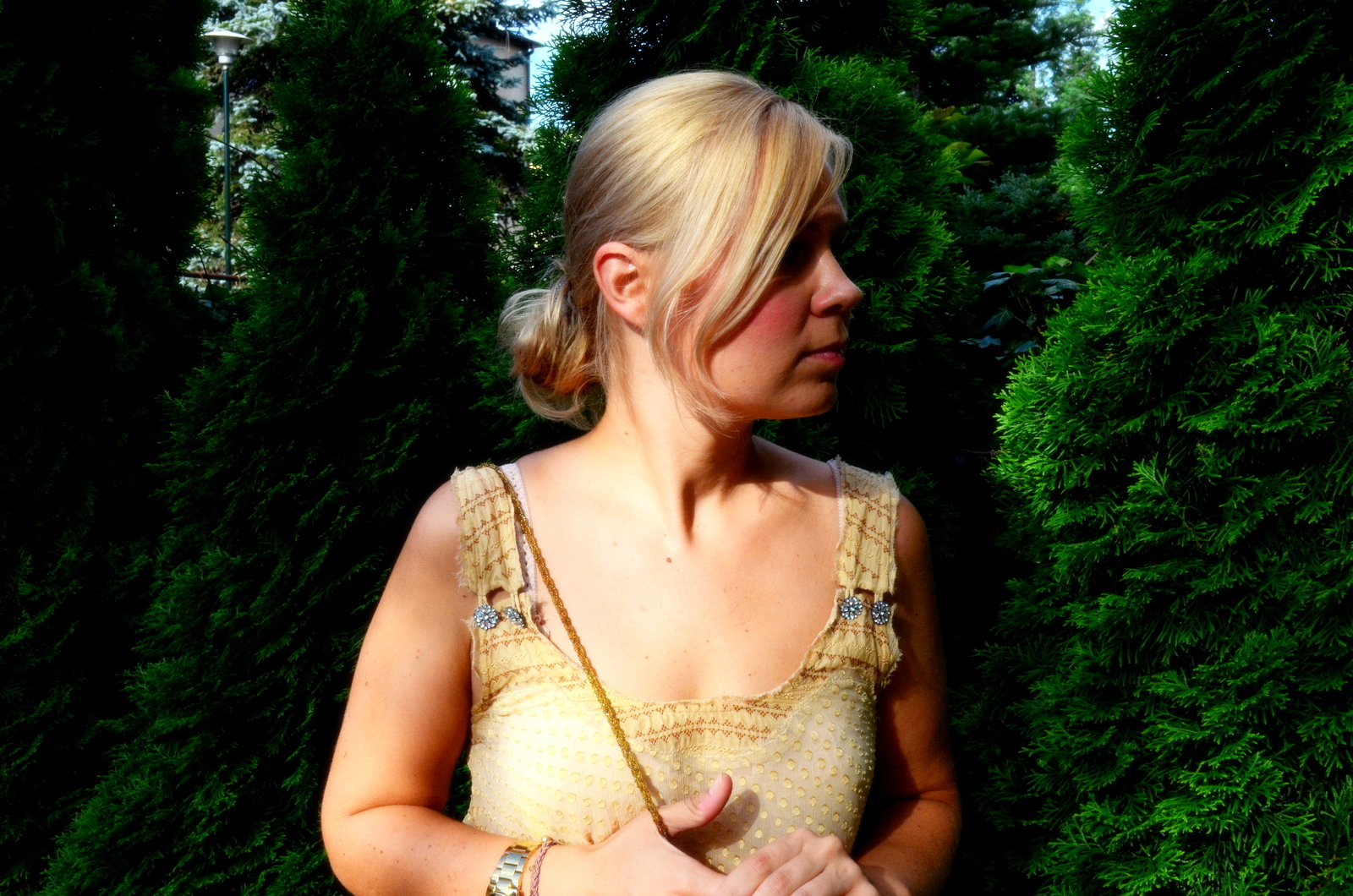 Zobacz oryginał czw., 12/07/2012 - 12:46Kto powiedział, że nie można ubrać się za grosze? Można. Dzisiejsza stylizacja jest tego dowodem. Jedwabna bluzka jeszcze z metką kupiona w ciucholandzie za 8 zł i kobaltowa spódnica z przeceny z New Look za 40 zł. Bardzo fajne połączenie mocnego koloru z delikatną żółcią. Do tego bogate dodatki i mamy super wakacyjny outfit.