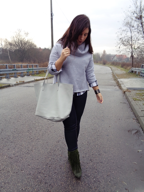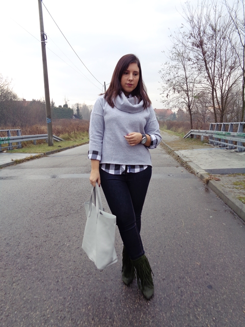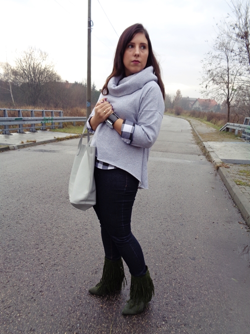 Zobacz oryginał ndz., 27/11/2016 - 15:13Bluza wcale nie musi oznaczać sportowego stylu. Co prawda daleka jestem od noszenia dresu ze szpilkami, jednak czasem można połączyć sportowe ubrania z eleganckimi tworząc wyjątkowy look. U mnie na razie dość zachowawczo. Zwykła koszula w kratę i dżinsy. Stylizację jednak świetnie uzupełniają rzucające się w oczy buty. Miał być kolor khaki, a wyszedł taki Piotruś Pan, ale i tak bardzo mi się podobają. A z przesyłką kosztowały mnie tylko 29 zł więc same plusy :)