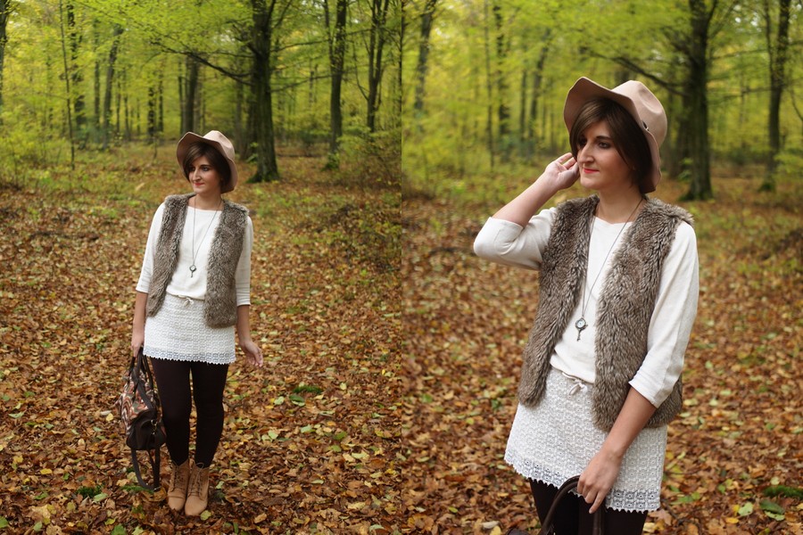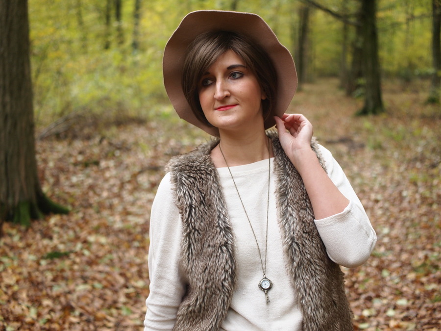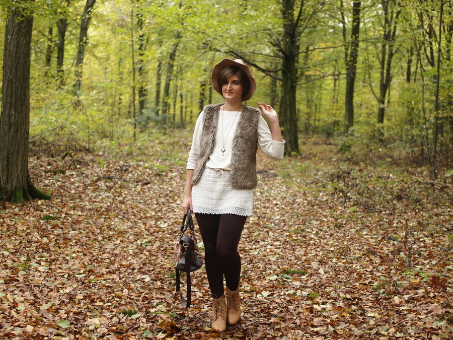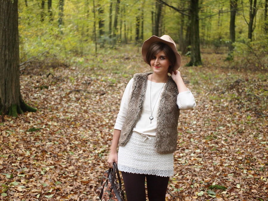 kamizelka- Takko // sukienka- SH // kapelusz, naszyjnik- Aliexpress // torba- Top Secret // botki- NN