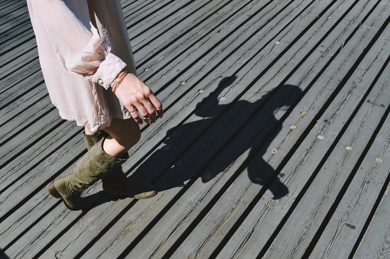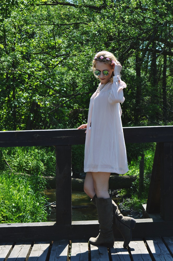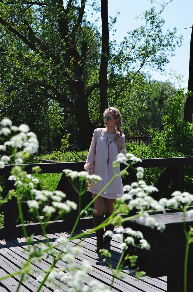 BOHO - wianek, kozaki i zwiewna sukienka