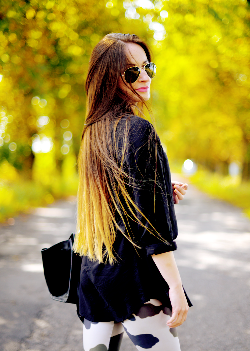Zobacz oryginał sob., 06/09/2014 - 12:27Od letnich, ciepłych postów odrywa nas dziś Roksana ze swoją propozycją jesienną. Co prawda zdjęcia są również pełne słońca, a tło niezwykle złociste co jest jedną z najlepszych cech naszej polskiej jesieni, to mimo tego czuć już na nich lekki powiew chłodnego wiatru. Jednak każdy jesienny dzień mógłby mimo wszystko tak wyglądać... Stylizacja zachowana jest standardowo w spokojnych, ulubionych kolorach siostry, czyli czerni, beżu, ciemnej zieleni czy brązu. Tak się jednak składa, że te trzy ostatnie kolory znajdują się tylko na legginsach. Takie połączenie kolorów to nic innego jak popularny, zarówno w poprzednim jak i aktualnym sezonie, print moro. Przez wielu kochany jak i nienawidzony. My go uwielbiamy, dlatego stworzyliśmy idealne wg nas legginsy w tym princie. Szkoda, że przez zdjęcia nie możecie poczuć ich cudownego, delikatnego materiału... :) Idealnie będą się sprawować w ciepłych, jesiennych stylizacjach, w połączeniu z klasyką, również z wielkim oversizowym swetrem i workerami... Co Wy na to?