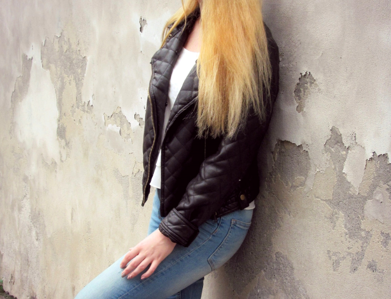 Zobacz oryginał śr., 01/10/2014 - 18:04Dzisiejszy zestaw zdecydowanie można zaliczyć do tzw. zwykłaków. Połączenie jeansu z bielą, to dla mnie klasyk. Idealne rozwiązanie, kiedy nie wiem co na siebie założyć. W połączeniu z skórzaną ramoneską i botkami na grubym obcasie (HIT !) otrzymaliśmy fajny, luźny look. O dziwo ja - wielbicielka pasteli♥ - bardzo dobrze się czuję, w takim lekko zadziornym zestawie.