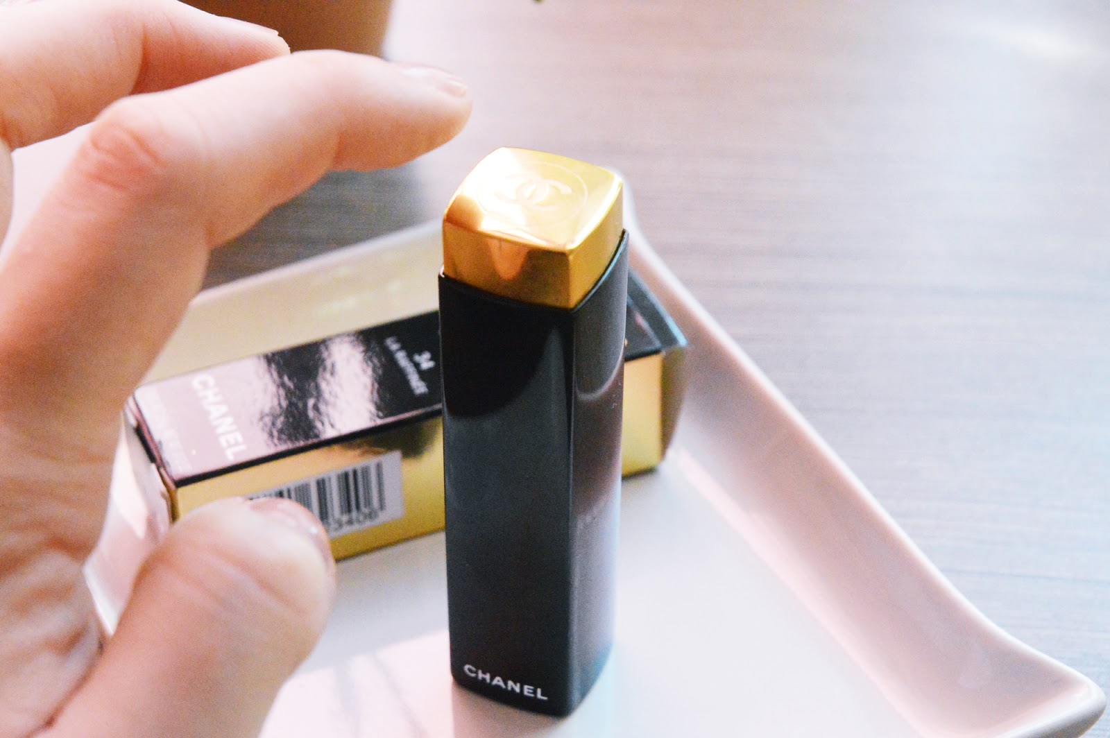 Kolor: szczerze mówiąc brałam w ciemno, jedynie w Internecie podpatrzyłam kolor. Wybrałam numer 34 La Raffinee i to był strzał w dziesiątkę. Chanel ma w swojej ofercie mnóstwo odcieni i na pewno wybiorę jeszcze nie jedną. Mój odcień to typowo brudny róż w mocniejszym wydaniu. Niestety nie uchwyciłam tego na zdjęciach, ale pokażę Wam na moim Instagramie (swoją drogą zapraszam @joannalifestyle).