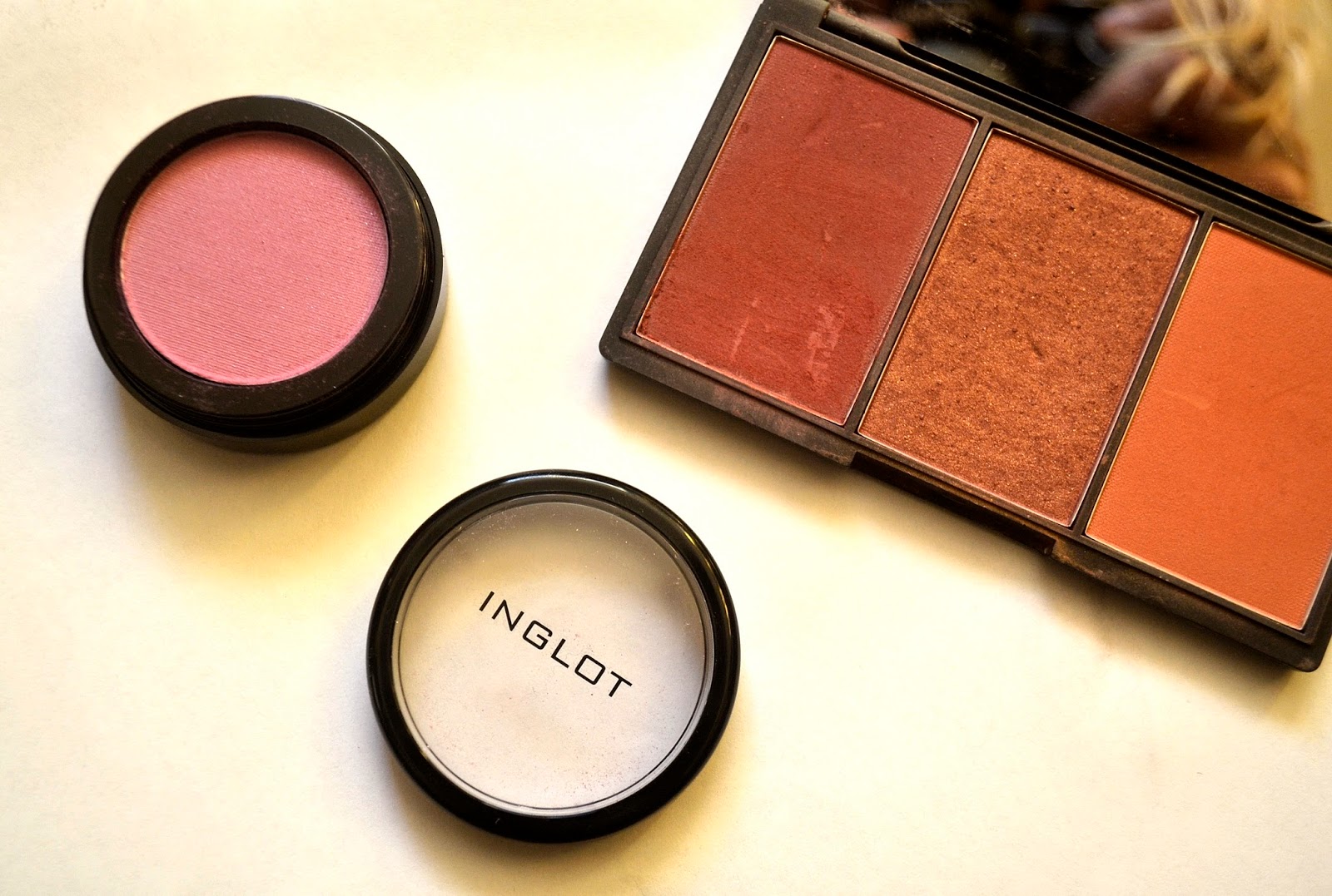 Kości policzkowe podkreślam różem Inglot nr90 lub Muscovado, czyli środkowym różem z palety SUGAR firmy SLEEK.