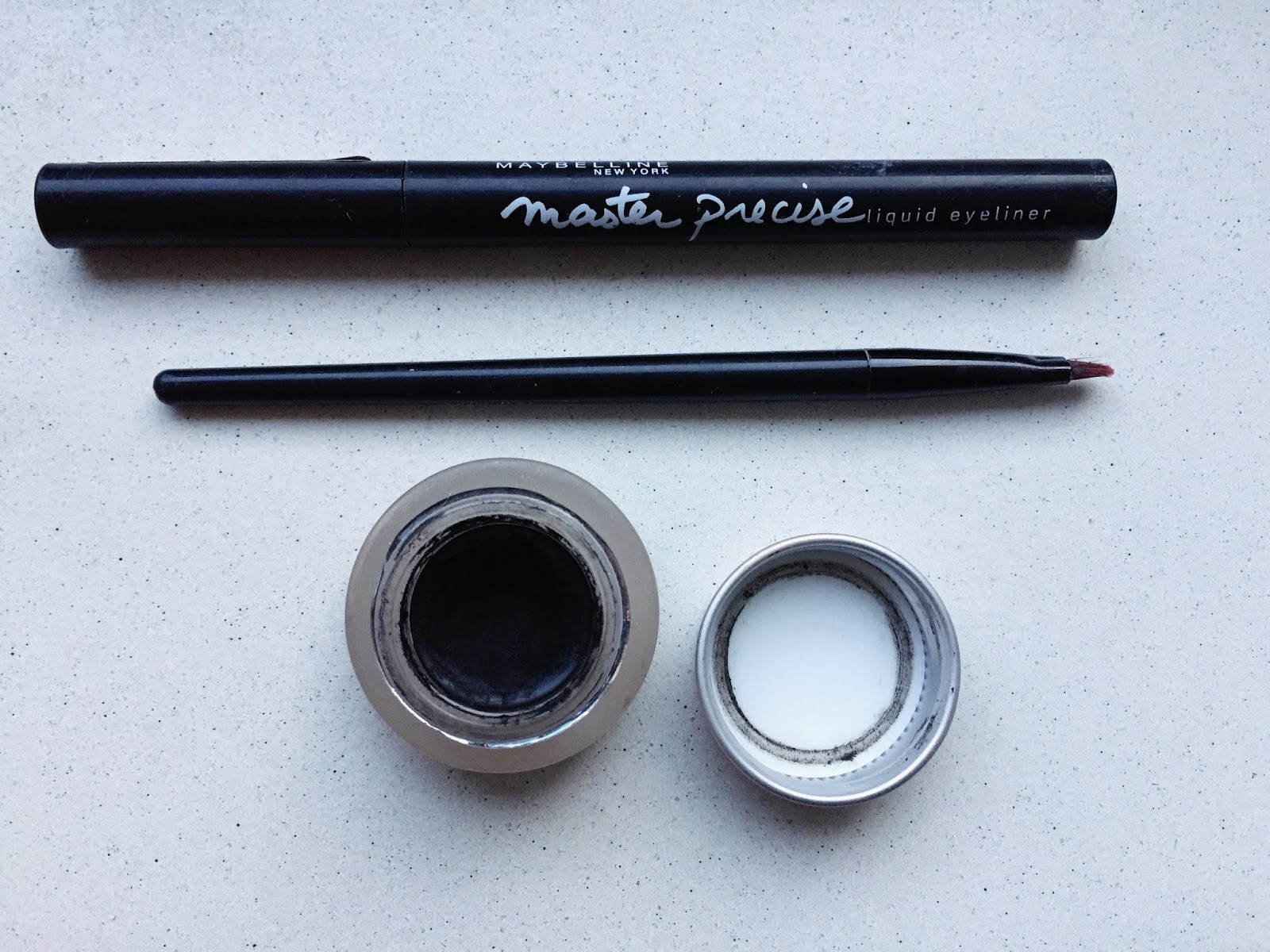 Dwa z trzech ulubionych eyelinerów. Pierwszy w pisaku. Świetnie się trzyma, łatwo się maluje, to już kolejny raz gdy znalazł się w mojej kosmetyczce. Drugi to produkt Maybelline. Ja używam do nakładania innego pędzelka, ale ten też nie jest najgorszy. Bardzo łatwo się do rozprowadza i długo się trzyma.