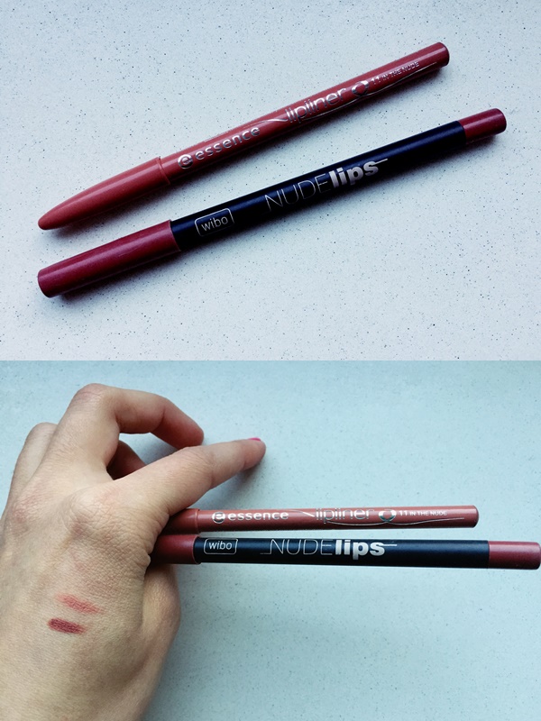 Moje dwie kredki z Rossmanna (miałam trzecią, ale gdzieś się zapodziała). Piękne odcienie i również świetna jakość. Kredka z essence to nr 11, kredka z wibo to nr 2