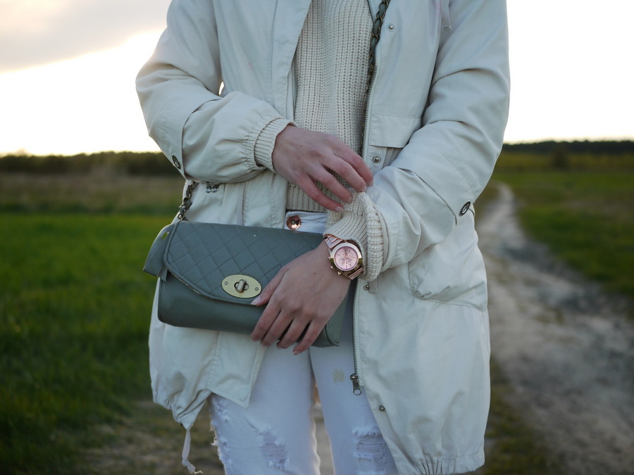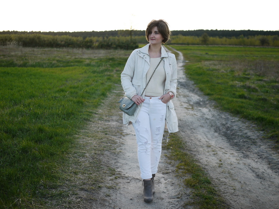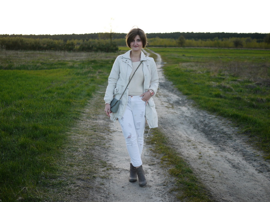 parka, spodnie - Reserved // sweter, torba- SH // botki - Deichmann