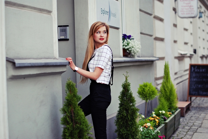 Na blogu pokazywałam Wam stylizację w białym długim kombinezonie (KLIK) i kilka w krótkim (KLIK). Dzisiaj jednak dla odmiany- ogrodniczki. Jak tylko je dostałam wiedziałam, ze będą jedną z moich ulubionych ubrań w szafie! Mimo, że częściej wybieram spódniczki i sukienki niż spodnie to ogrodniczki mogłabym nosić cały czas :) Może przesadziłam, ale naprawdę je lubię! Świetnie wyglądają w sportowym połączeniu, a także ze szpilkami. Dzisiaj przygotowałam zestaw z sandałami na obcasie i bluzką w kratę.