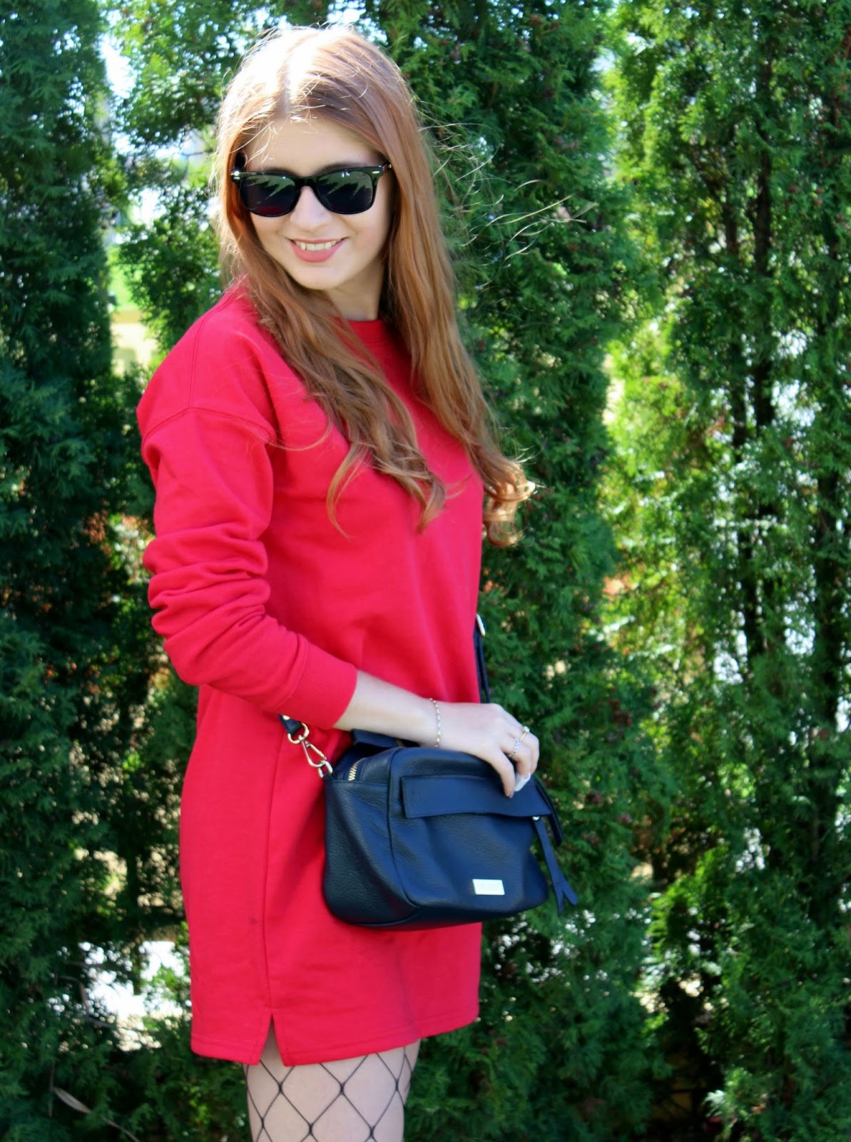 Sukienka bluza- mega miła w dotyku- idealna do wszystkiego w połączeniu z ogromnymi kabaretkami i granatowymi dodatkami. Nic prostszego się nie dało :) Na sam koniec, klasyczne okulary od eOkulary.