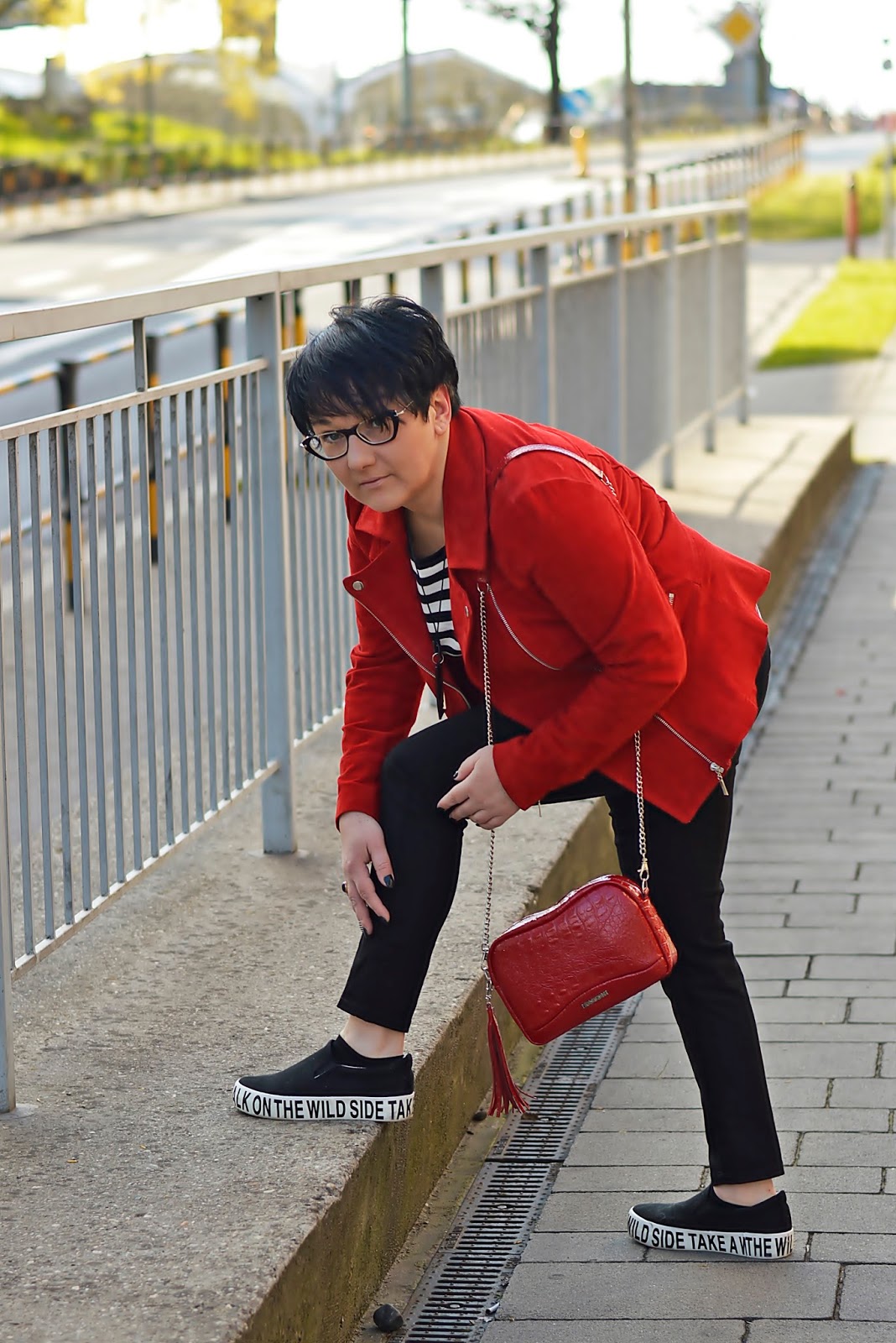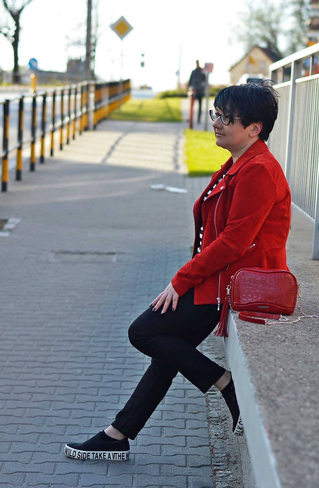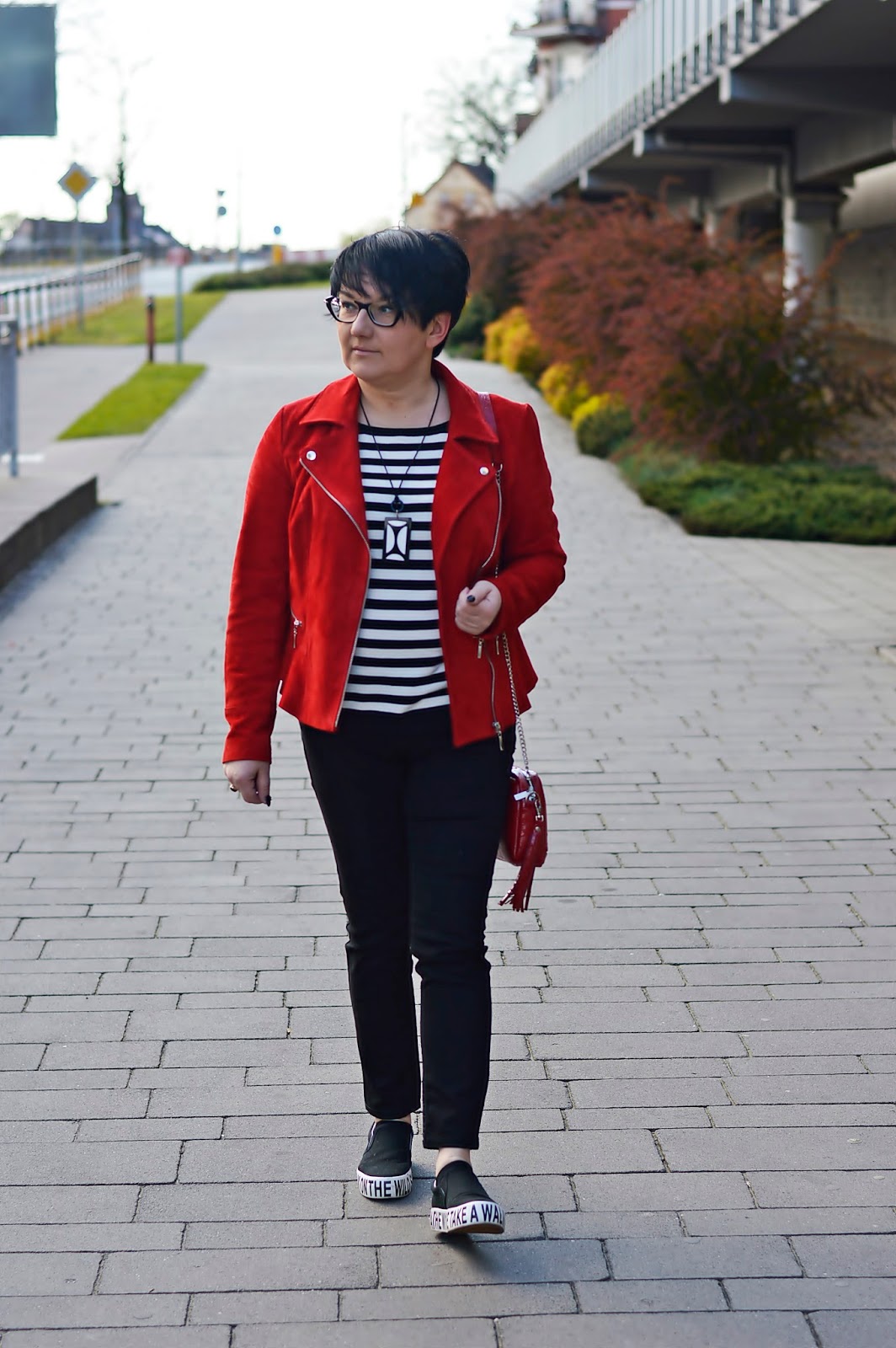Moją czerwoną, połączyłam ze sweterkiem w paski. Ten wzór to moja ostatnia miłość. Tego lata zobaczycie ich sporo. Oczywiście w wersji B&W ale widzę, że doskonale komponują się z czerwonym właśnie.