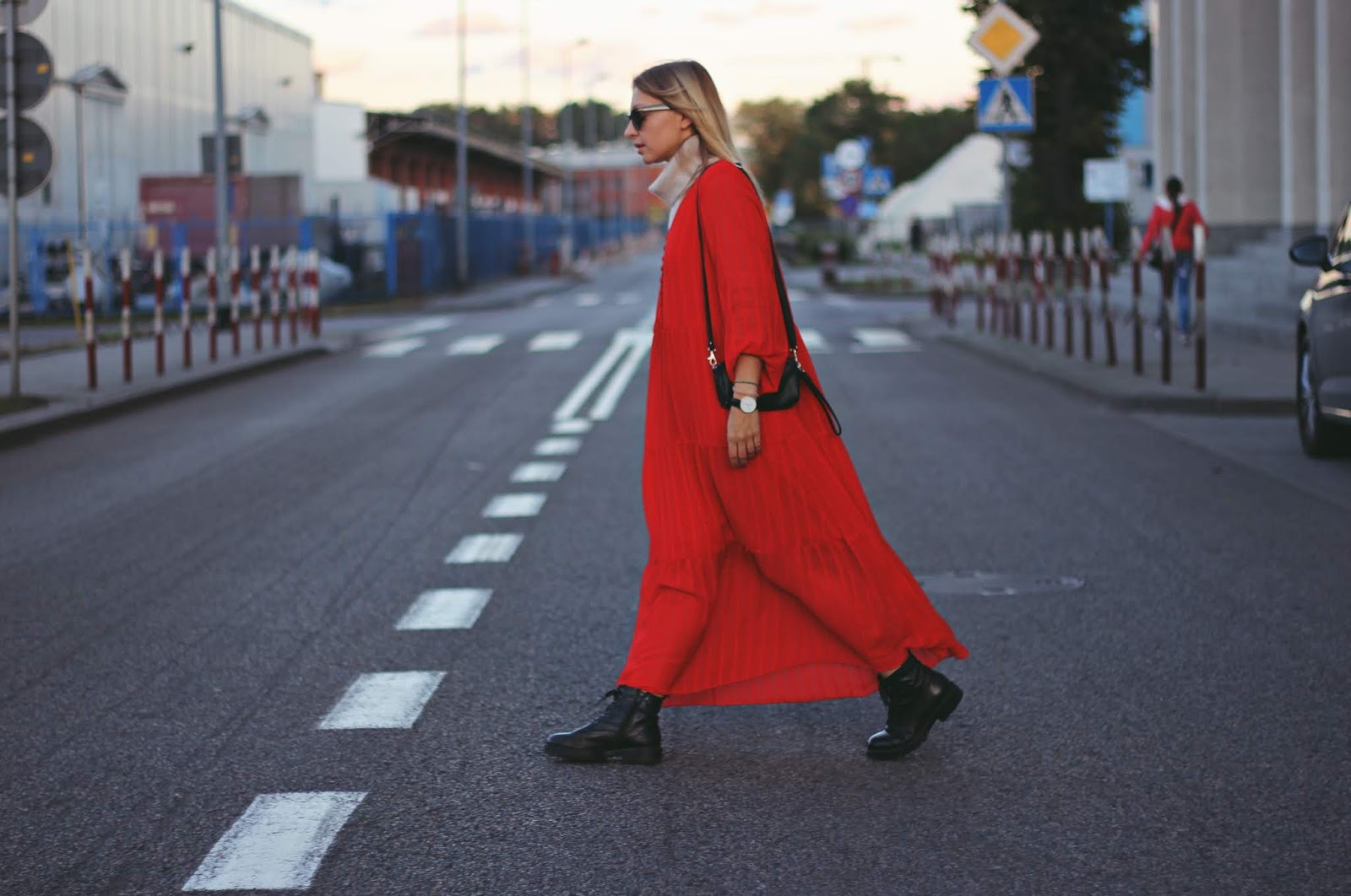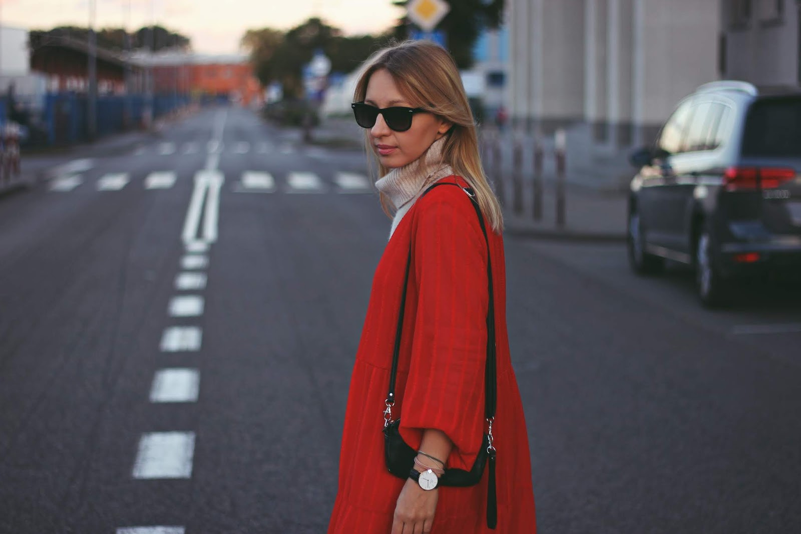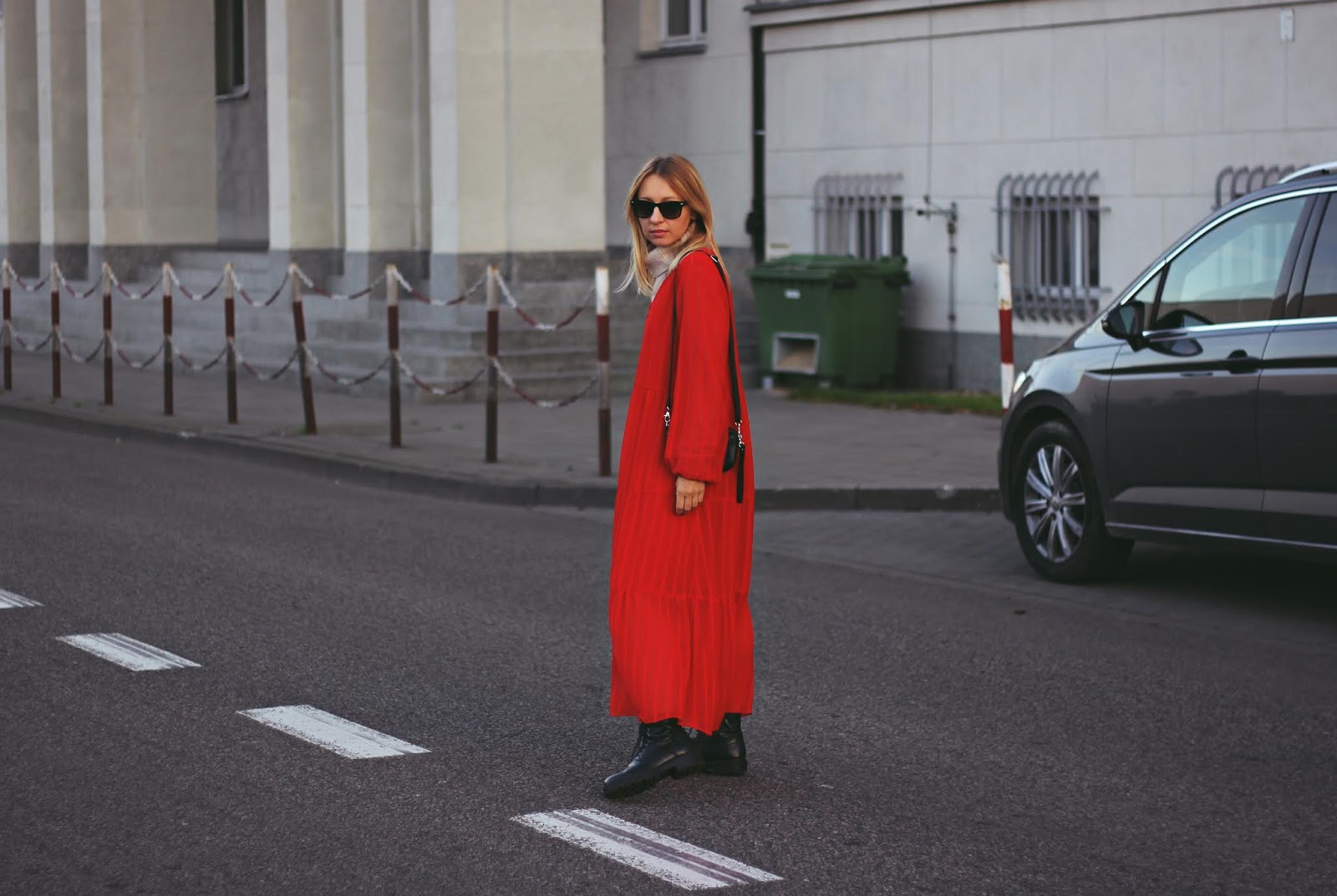 czerwona sukienka / jesienna stylizacja