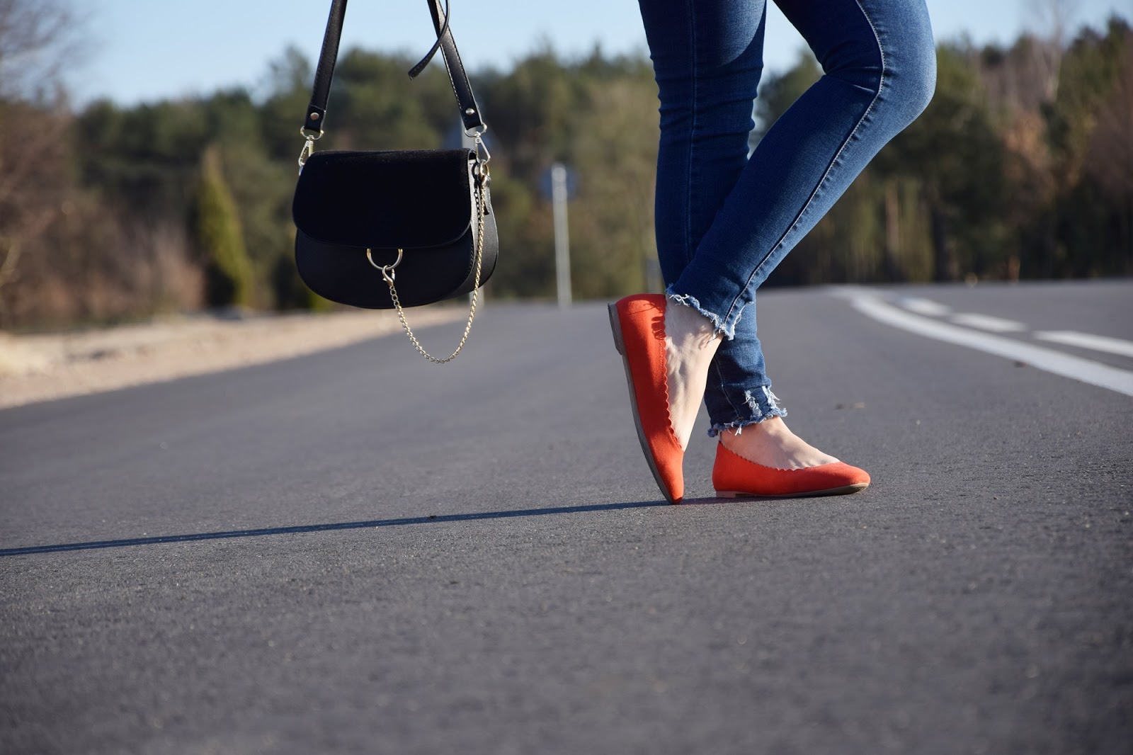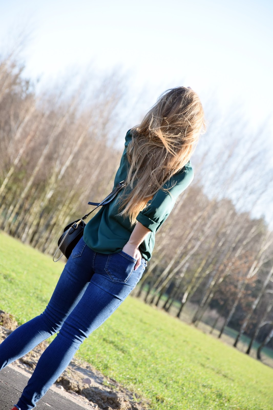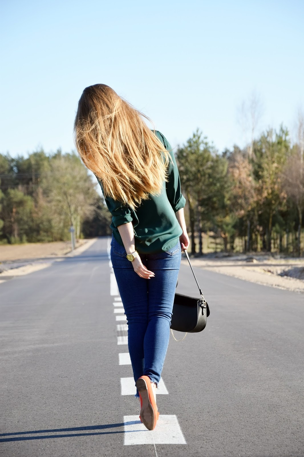 Co to stylizacji to jest wręcz banalna. Jeansy, koszula i baleriny :) Postawiłam na dwa mocne kolory - butelkowa zieleń i czerwień (wpadająca w pomarańczowe tony). Myślę, że tyle wystarczy by cały look nabrał charakteru :) Co myślicie o takim zwyklaczku? :)