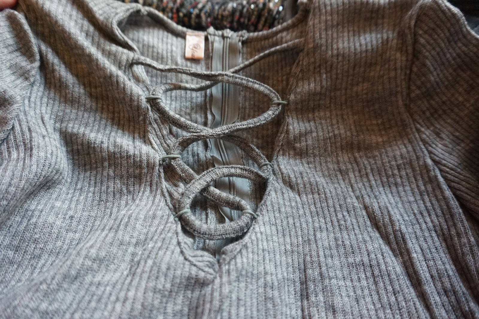 Bluzka - koszulka, którą zamówiłam, jest wykonana z bawełny z dodatkiem poliestru, czyli tak jak większość tego typu bluzek. Muszę przyznać, że materiał nie jest dość przyjemny w dotyku, to odejmuje bluzce 1 punkt. Modne wiązanie przy dekolcie sprawiło, że się na nią skusiłam. Tego typu dekolt bardzo ładnie podkreśla biust i dodaje eleganckiego wyglądu całej stylizacji. Tutaj również nie mogę stwierdzić rażących zaniedbań ze strony sklepu czy fabryki. Równe szwy, brak wystających nitek. Jakość śmiało mogę porównać do tej z H&M, Zara czy Reserved.
