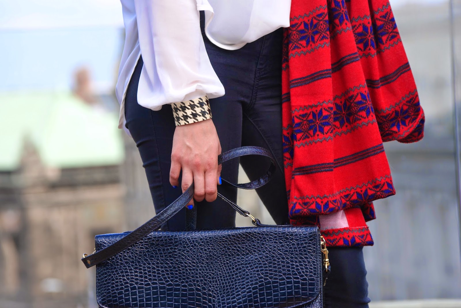 Dodatkowo na zdjęciach widoczny jest jeszcze jeden element handmade. A mianowicie ręcznie robiona bransoletka, którą podarowała mi koleżanka. Bardzo mi się spodobała, ponieważ jest z drewna, a ten materiał zawsze będzie wyglądać elegancko i nigdy nie wyjdzie z mody. Jak komuś się spodobała, to można takie dostać na stronie http://pankos.pl/