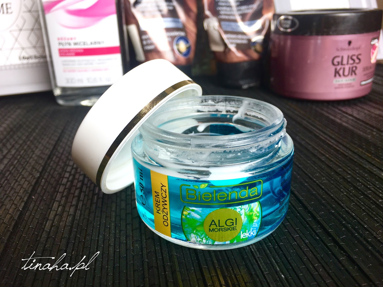 Zacznę od lekkiego kremu na dzień Bielenda Algi Morskie. Początkowo z tej serii używałam serum do ciała, które jest dla mnie niezastąpione, więc postanowiłam sprawdzić inne produkty z algami i oczywiście okazały się równie ciekawe. Krem jest przyzwoicie odżywczy, ma nieziemski zapach i dobrze sprawdza się pod makijaż. Cenię w nim również błyskawiczne wchłanianie się oraz niską cenę. Na minus niestety zasługuje szklany słoiczek, przez który krem zyskuje na wadze i występuje ryzyko zbicia się. Krem stosowałam również na noc. Jeśli nie macie większych problemów z cerą to z pewnością będziecie z niego zadowolone.