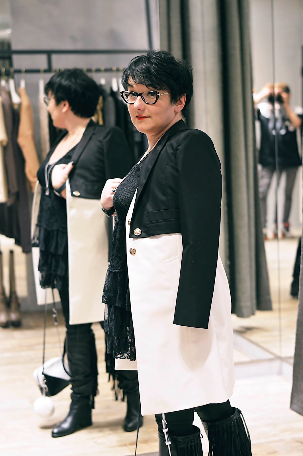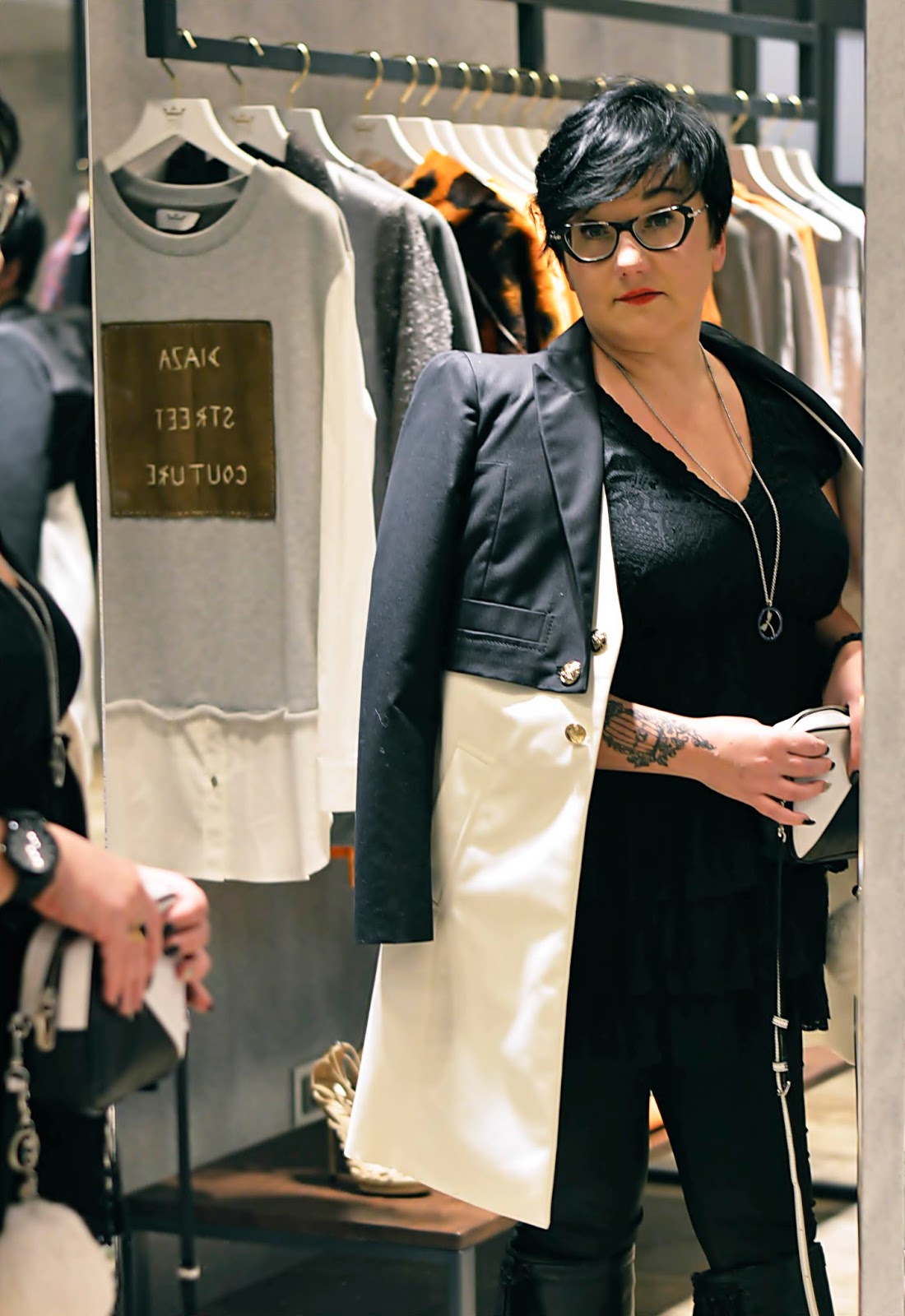 Po raz pierwszy miałam okazję przymierzyć tak drogie ubrania. Płaszcz Gucci skradł moje serce. Jakby dla mnie zaprojektowany ! Dobrze, że nie było rozmiaru ( włoska numeracja jest mocno zaniżona ) bo nie wiem, czy nie wzięłabym kredytu ! ( żart ) Mimo to fajnie było poparadować w tak ekskluzywnym płaszczu. Nie pytajcie o ceny, bo nie są one dla większości z nas.