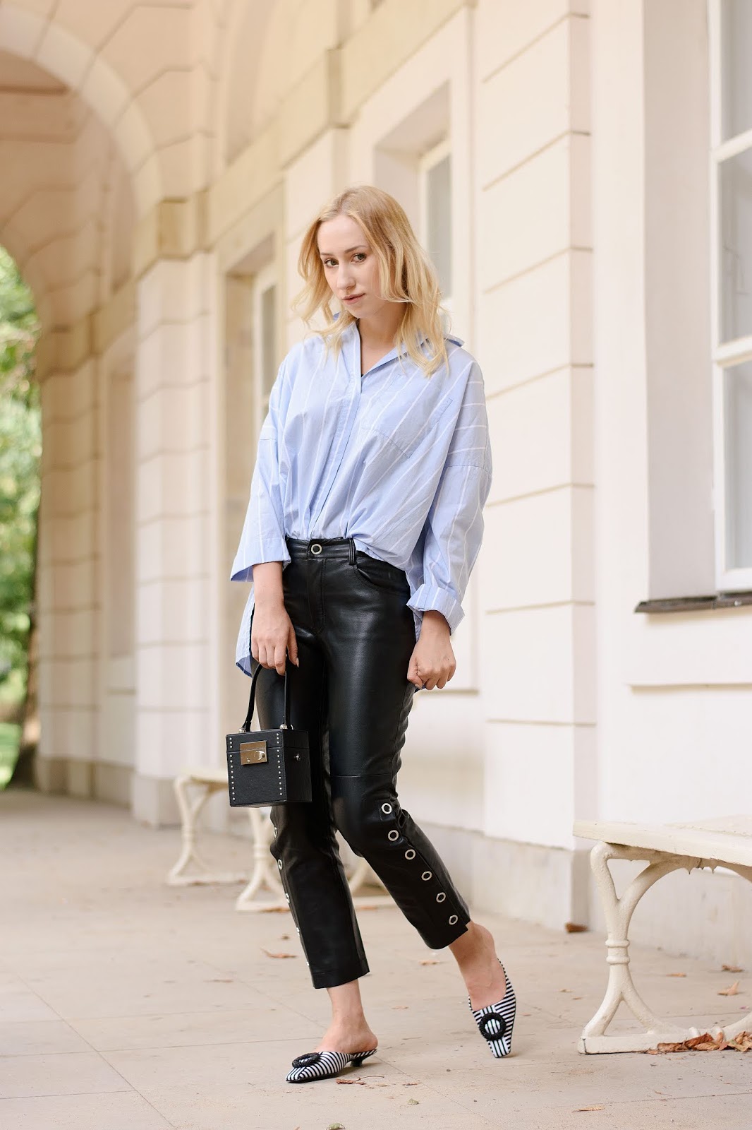 Zobacz oryginał pon., 03/09/2018 - 10:46Pomału robi się coraz chłodniej, dlatego wymieniłam zwiewne sukienki na dłuższe spodnie i koszulę z dłuższym rękawem. Kto dłużej śledzi mojego bloga, ten wie, że uwielbiam koszule. Te z motywem pasów są moim faworytem, szczególnie w połączeniu z czarnymi spodniami. Te ze sztucznej skóry upolowałam rok temu i do dzisiaj świetnie mi służą. Powiem szczerze, że nie mogłam się doczekać, kiedy będzie trochę chłodniej, żebym mogła wyciągnąć spodnie z dna garderoby.