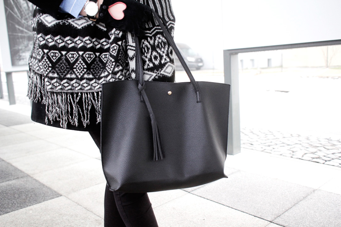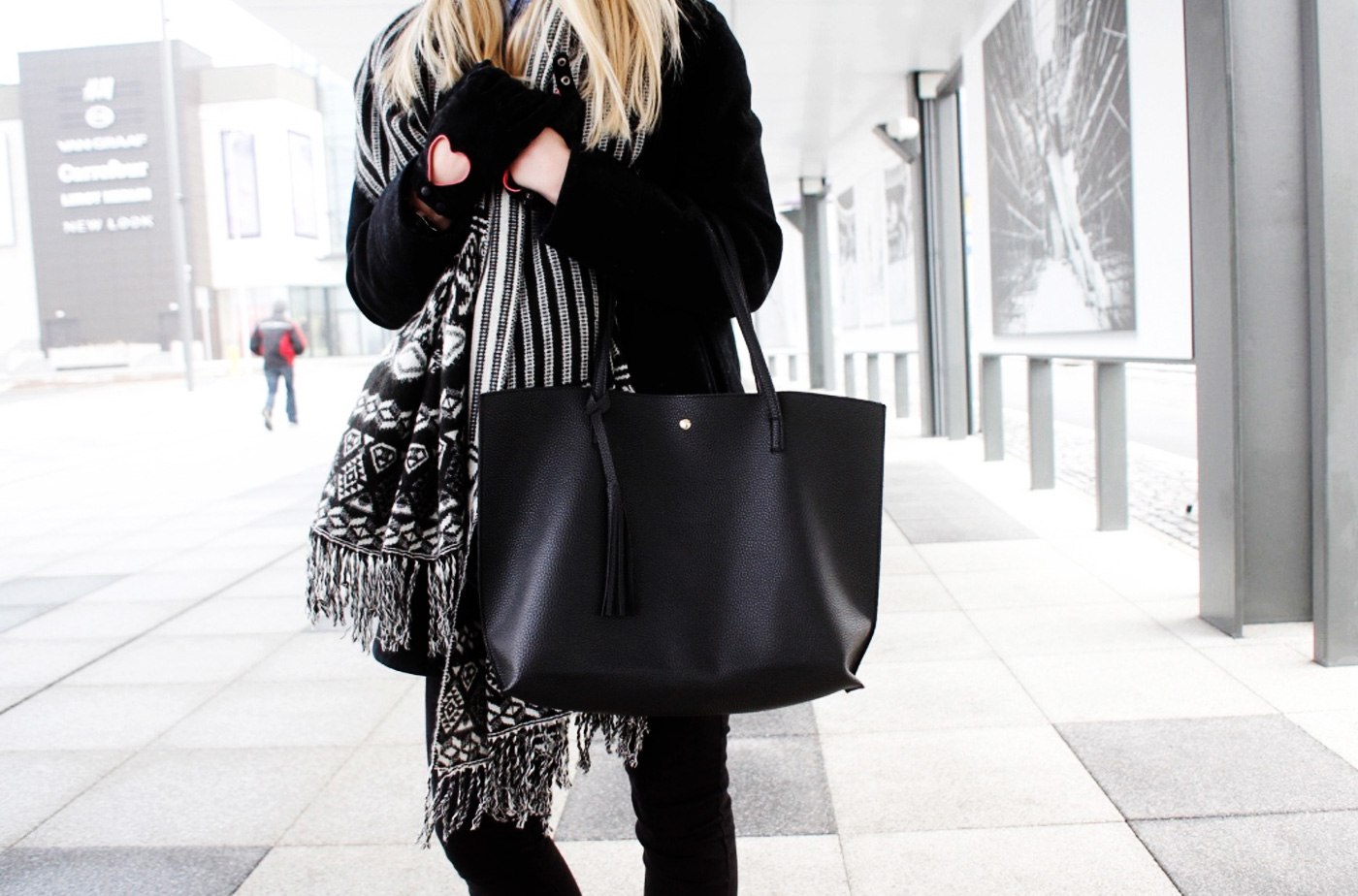 płaszcz - sh; szalik - Stradivarius, koszula - Rosegal, spodnie i zegarek - Reserved, torebka - Rosewholesale, kolczyki - Rosewholesale