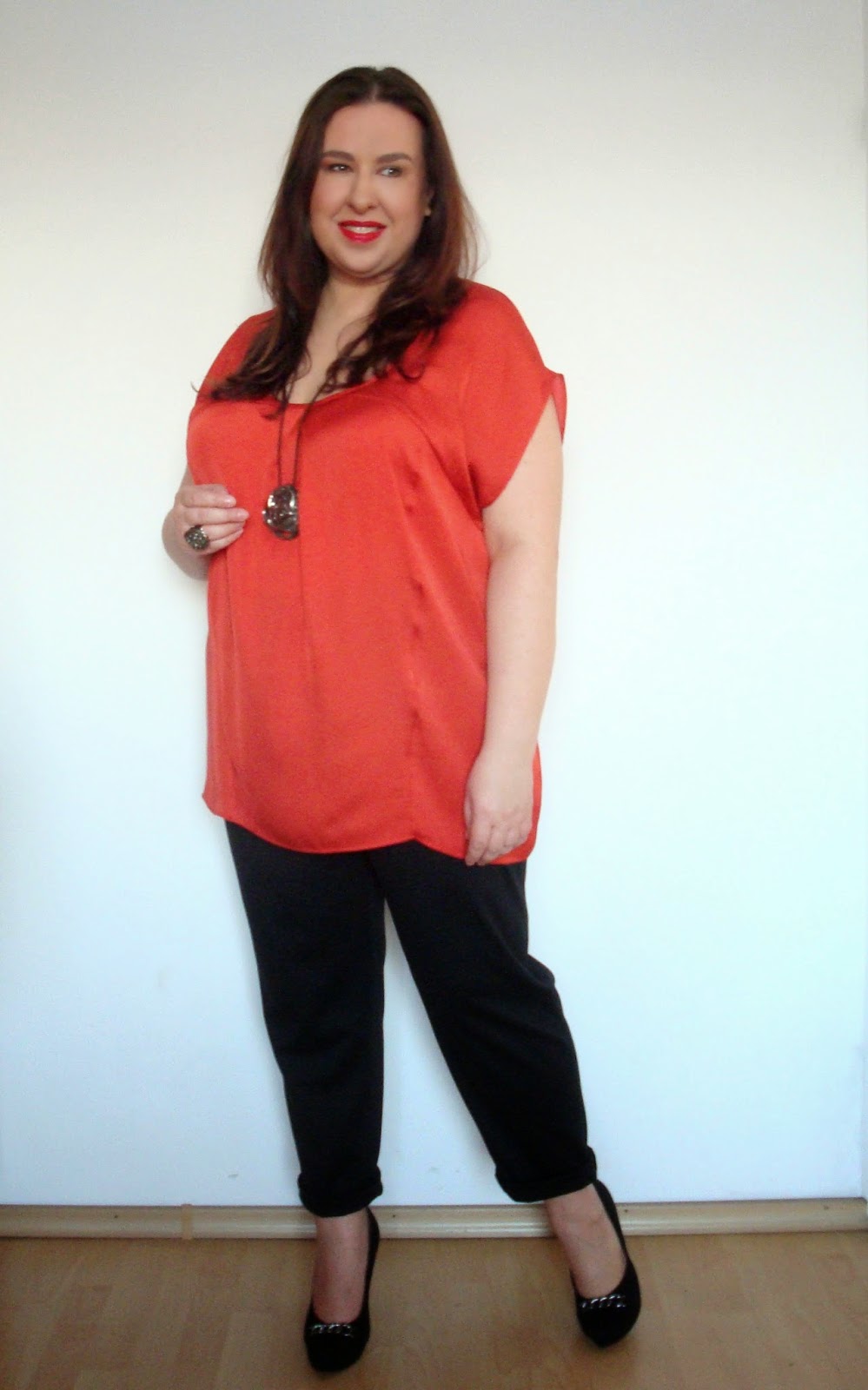 W pierwszej stylizacji zestawiłam pomarańczową bluzeczkę ze spodniami firmy Magnify i przepiękną biżuterią marki OYCA.