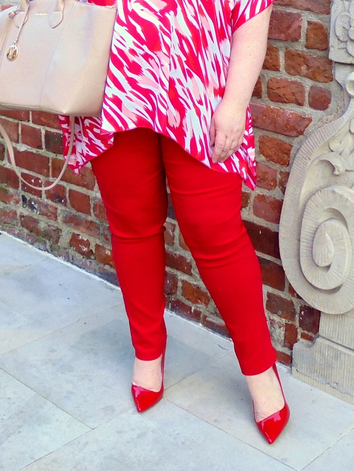 Zestawiłam ją z czerwonymi spodniami marki Cevlar, które kupiłam w elbląskim sklepie Oversize.
