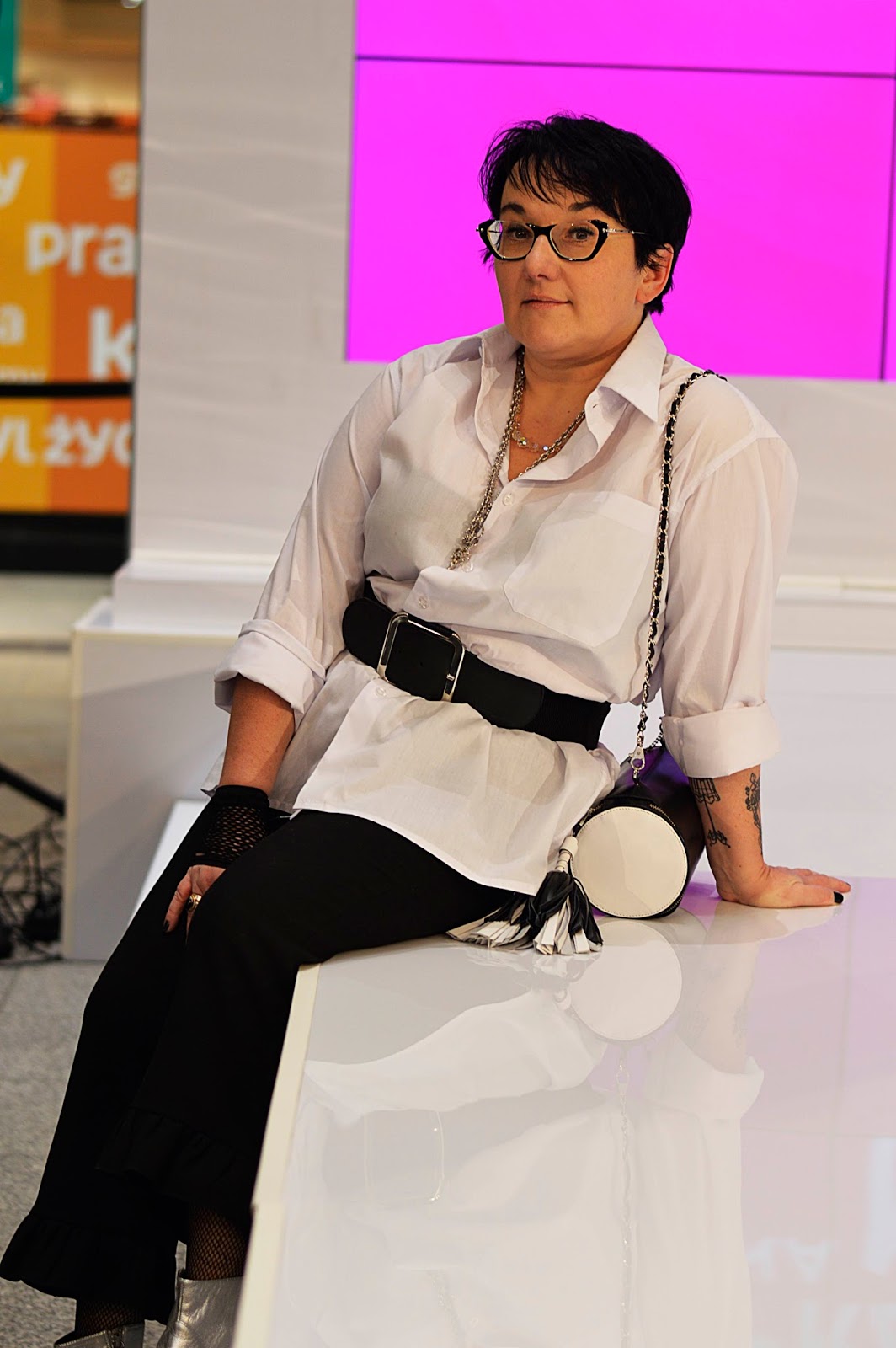 Moja stylizacja opierała się głównie na dodatkach i nawiązywała najbardziej kiczowatego okresu w historii mody, czyli do lat osiemdziesiątych. Lata osiemdziesiąte to moja młodość i doskonale je pamiętam; to styl disco, błysk, plastikowe klipsy, bransoletki, błyszczące buty i to wszystko co podpowiadała wyobraźnia, łańcuchy, kabaretki, getry ( dzisiaj zwane leginsami ),Madonna, Limahl, serial Dynastia.