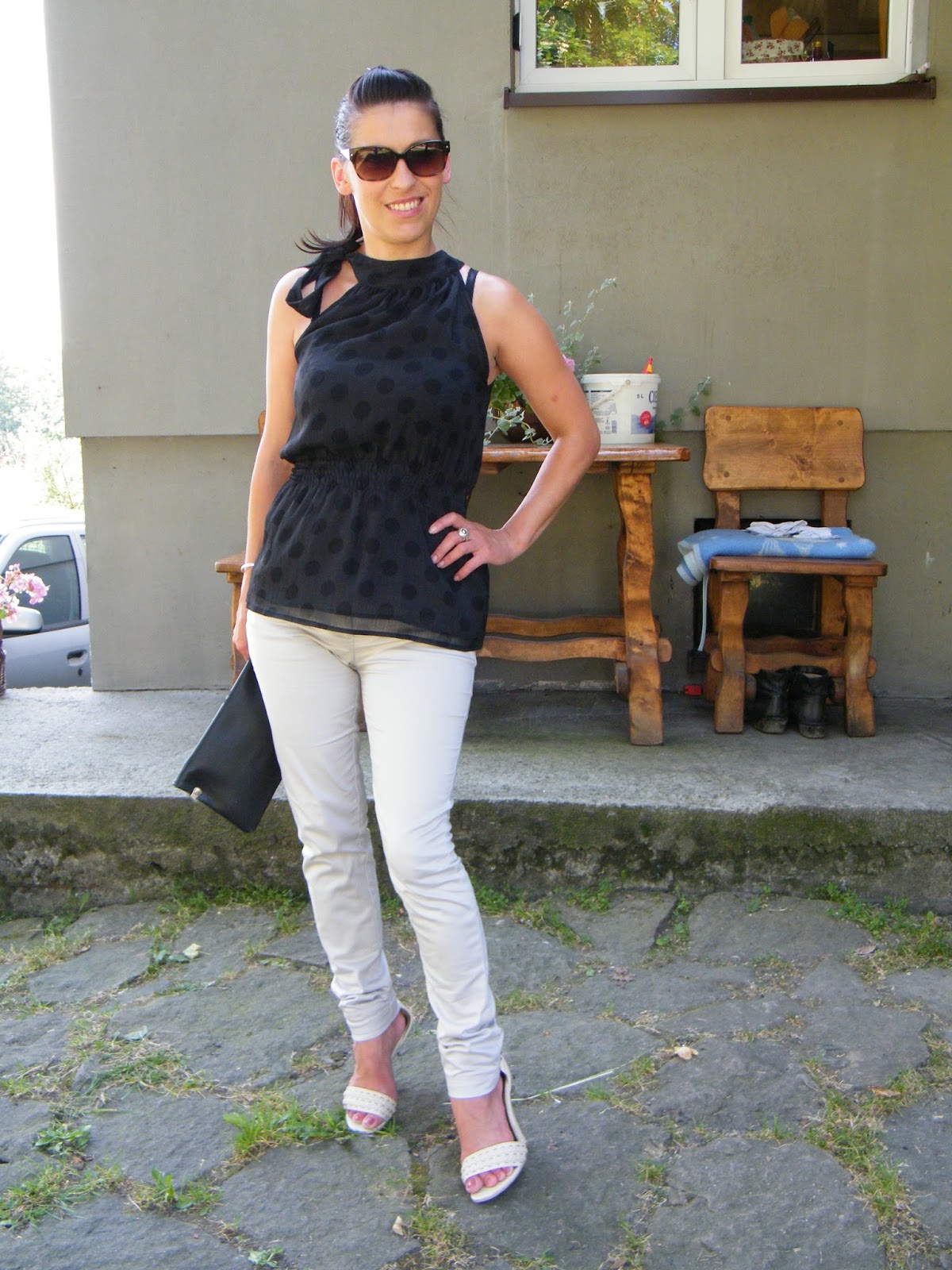 Zobacz oryginał czw., 01/08/2013 - 11:13Tym razem groszki,do tej stylizacji wybrałam bluzeczkę w groszki wiązaną na ramieniu,zwiewną idealną na lato,do tego jasne spodnie,jasne butki ,które już się pojawiały no i rarytas ,kopertówka!,ale jaka!Kopertówka mojej mamy ,bardzo wiekowa,ma chyba z sześćdziesiąt lat-zabytek wręcz!