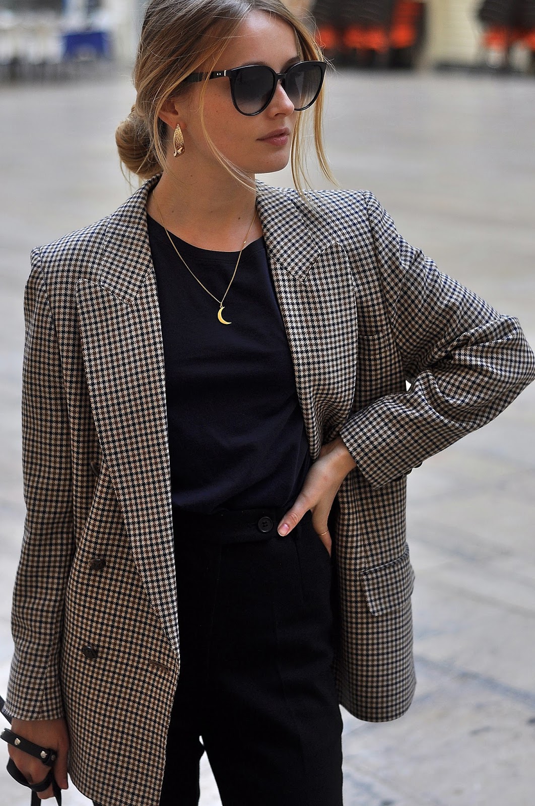 Zobacz oryginał wt., 03/01/2017 - 21:57BLAZER - Vintage / PANTS - H&M Premium / T-SHIRT - H&M Trend / ANKLE BOOTS - here (similar: here & here) / BAG - Agneel / SUNGLASSES - Celine