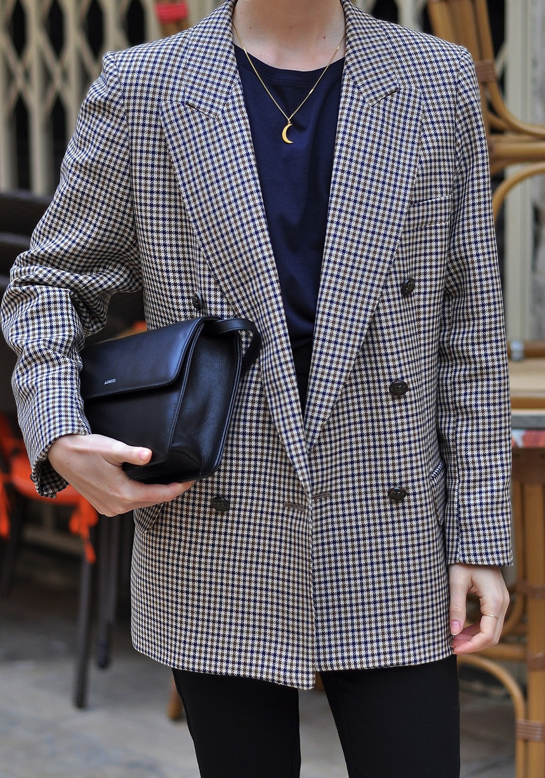 Jeden z moich bardziej udanych, vintage'owych zakupów ostatnich miesięcy - dwurzędowa marynarka w kratkę, wykonana w 100% z wełny. Pierwotnie w nieco większym rozmiarze, jednak za sprawą kilku wizyt u krawcowej, finalnie dopasowana do mojej sylwetki i potrzeb :)