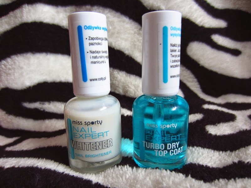 Na koniec odżywka wybielająca z Miss Sporty i top coat przyśpieszający wysychanie lakieru - również z Rossmanna na promocji niecałe 10 zł za obydwa :)