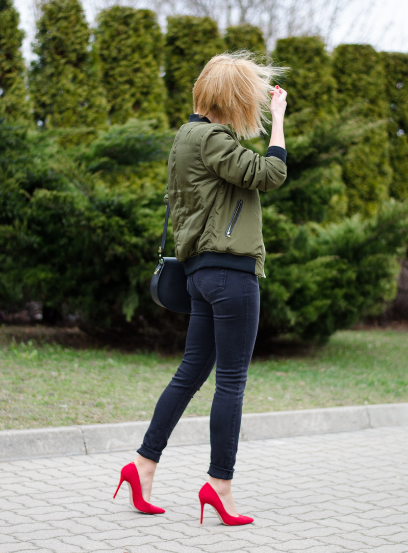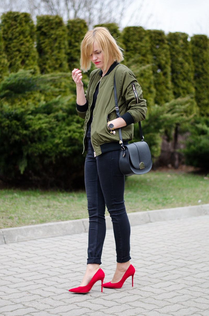 Zobacz oryginał wt., 22/03/2016 - 20:10Po raz kolejny khaki pojawia się na moim blogu :-) A dzisiejsza stylizacja to w całości pomysł mojego narzeczonego :-) Nie myślałam na początku, że czerwone akcenty będą tutaj pasować, ale wydaje mi się, że efekt końcowy to strzał w dziesiątkę :-) Co myślicie, też Wam się podoba taki sposób na supermodną teraz "bomberkę"?