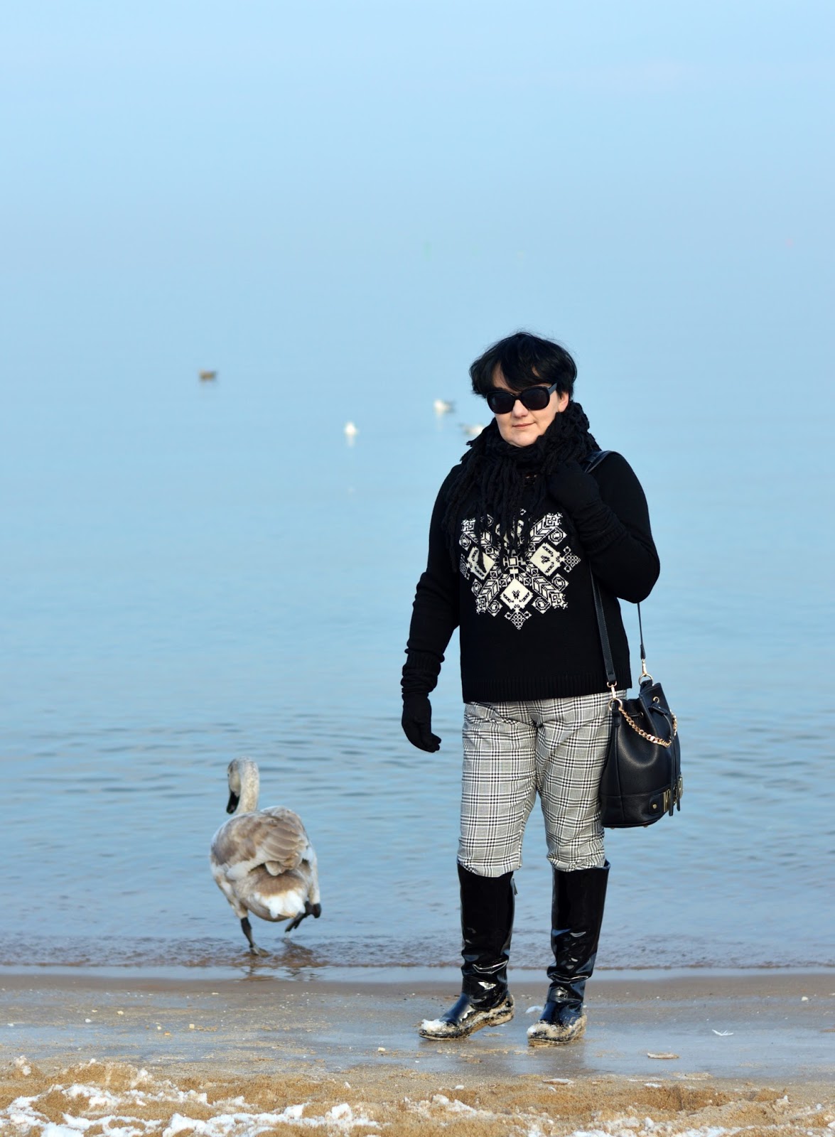 SWETEREK - C&A, SPODNIE - F&F, KOMIN- ORSAY, RĘKAWICZKI - KARI, FOTO - JUNIOR