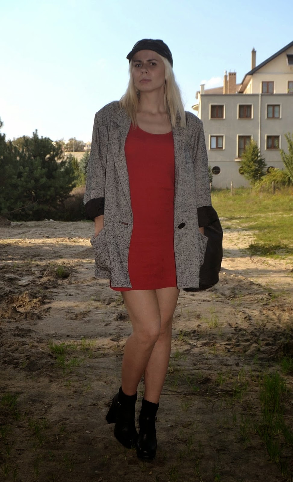 marynarka, sukienka, buty_SH/ kaszkiet_H&M+DIY/ torebka_HOUSE