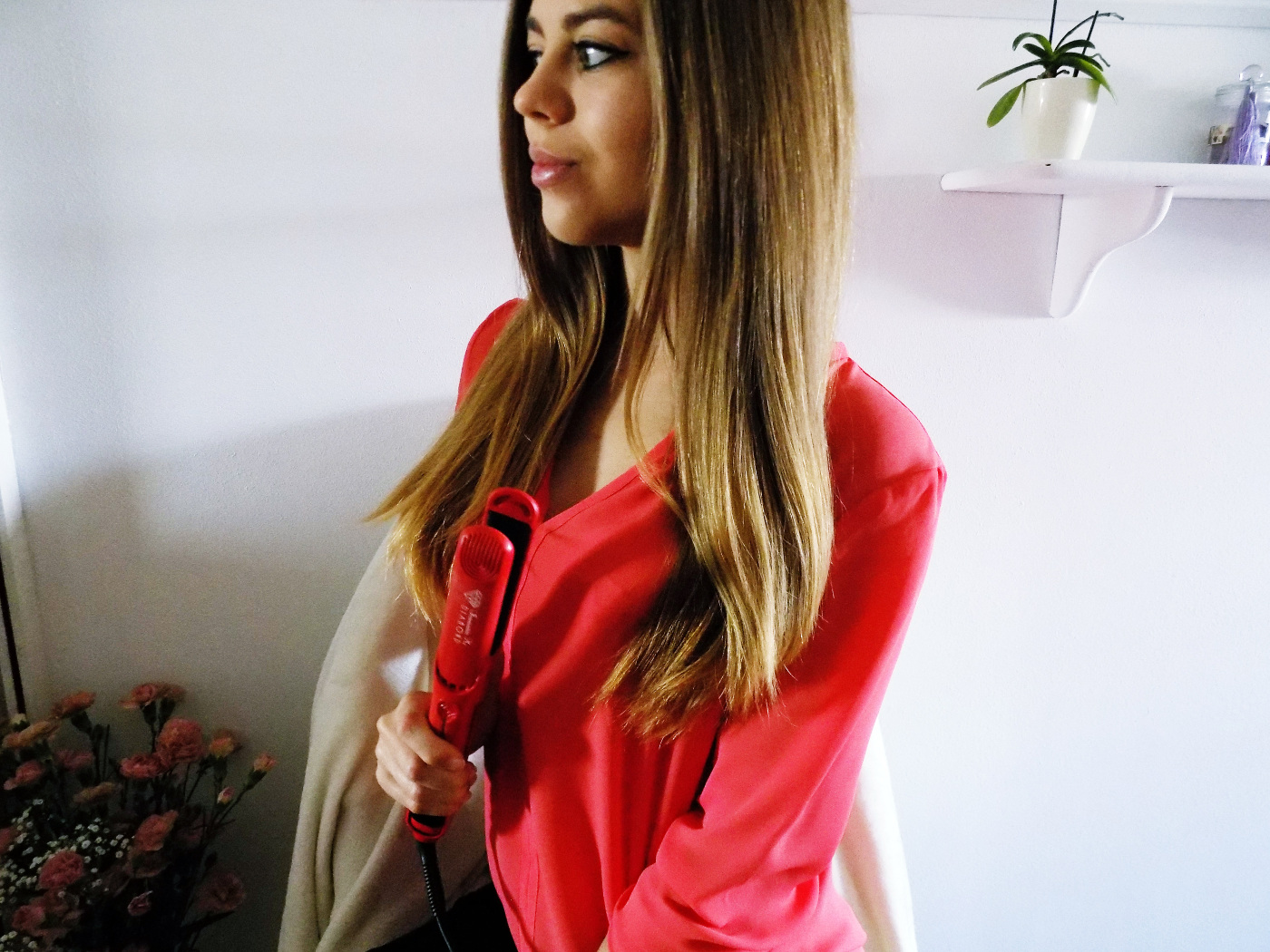 Własna prostownica to jednak wygoda. Nie muszę już się martwić, że wyjdę z domu z nieładem na głowie. Dodatkowo poprawiam swoje umiejętności kręcenia loków. Za każdym razem wychodzą mi ładniejsze :) Natomiast dzisiaj przygotowałam dla Was post z wyprostowanymi włosami. W końcu takie jej przeznaczenie :) Włosy miałam lekko pofalowane, przez to, że umyłam głowę na noc i nie zdążyły wyschnąć. Moim zdaniem włosy prezentują się świetnie :) Sami oceńcie :)