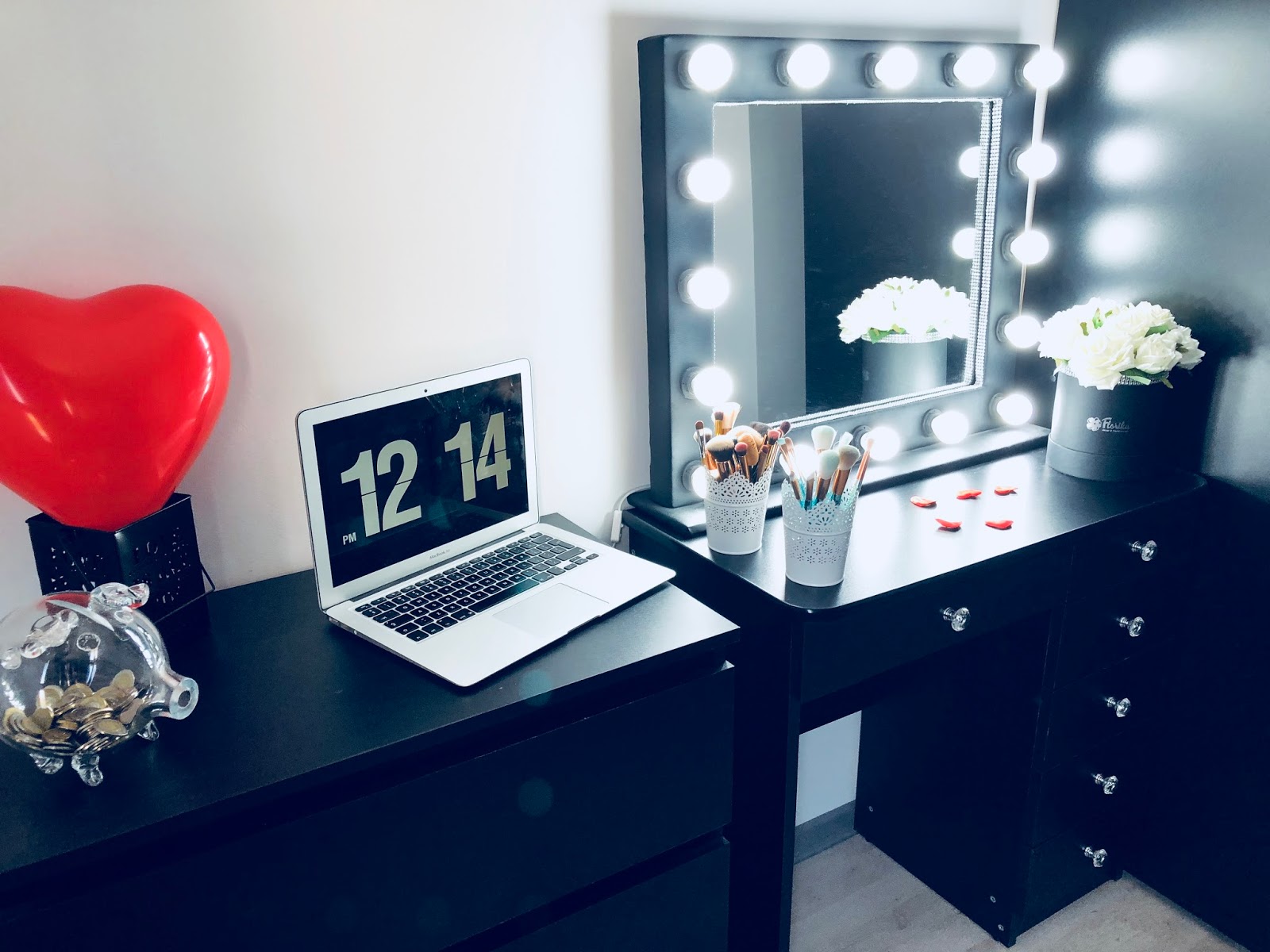 Zobacz oryginał wt., 20/02/2018 - 15:56Toaletka niczym z Hollywood do dawna była moim wielkim marzeniem, jednak ceny takich profesjonalnych stanowisk do makijażu to koszt w granicach dwóch tysięcy złotych, co czyniło to cel bardzo odległym. Postanowiłam więc wziąć sprawę we własne ręce i ... stworzyć toaletkę z prawdziwego zdarzenia od podstaw. Moje zadanie było o tyle utrudnione, że cały wystrój sypialni jest utrzymany w czerni, a wszystkie gotowe toaletki są białe. Jeśli jesteście ciekawi jak zbudowałam swoją toaletkę to zapraszam do lektury!