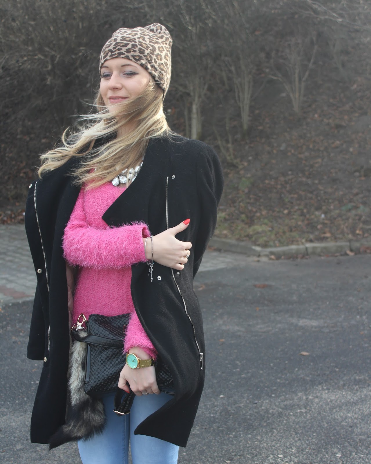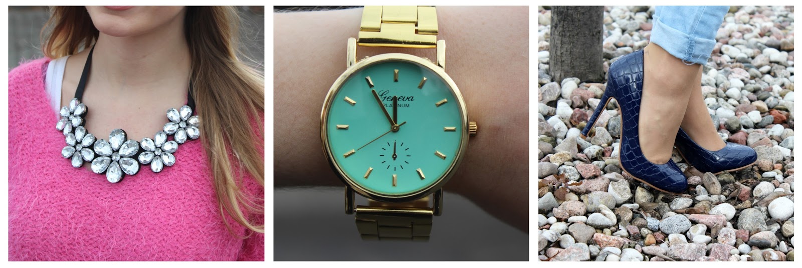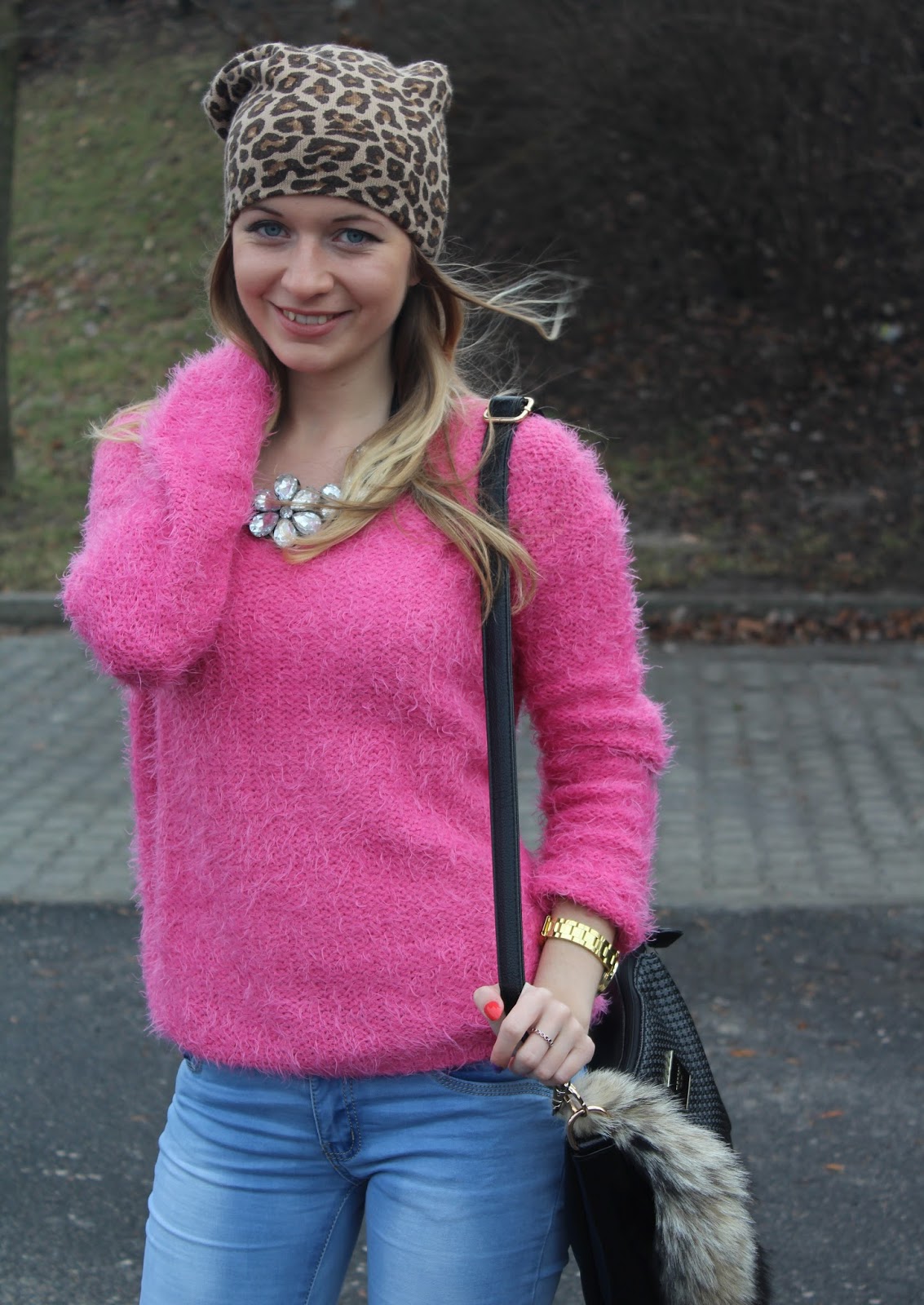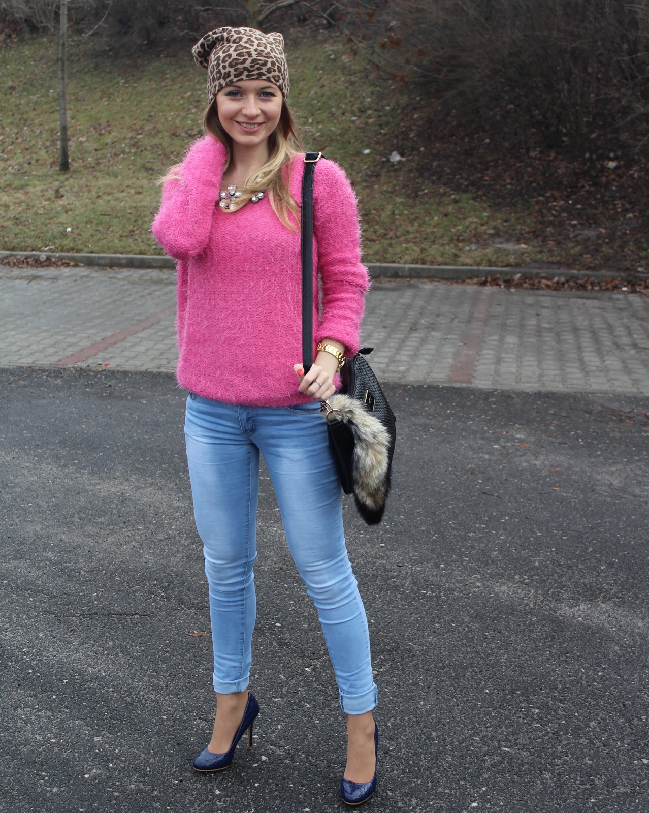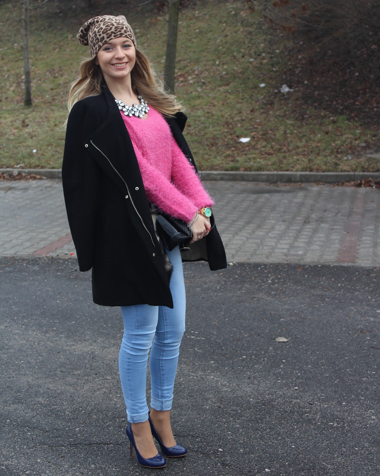 Zobacz oryginał pon., 22/02/2016 - 18:30Przed Nami końcówka lutego, a tu praktycznie wiosna! Ja się cieszę, dlatego dzisiaj troszkę żywsze kolorki. Stylizacja, w której główną rolę grają jaśniutkie jeansy od Mercerie. Dla mnie to jedne z lepszych spodni, gdyż są bardzo elastyczne, przez co świetnie dopasowują się do sylwetki. Dobrałam do nich granatowe szpileczki od Pantofelek24, które są bardzo wygodne i już wiosną wkroczą na stylizacyjne salony ;) A do reszty wściekle różowy- ulubiony- sweterek z niebotycznie dużym naszyjnikiem Born Pretty Store. Zakochałam się w nim od pierwszego wejrzenia, choć sama nie wiem co mnie bardziej urzekło, wiązanie na szyi czy sam naszyjnik ;) Reszta dodatków to jedna z ulubionych beanie od Super- dodatki i złoto miętowy zegarek od Sophie Boutique.