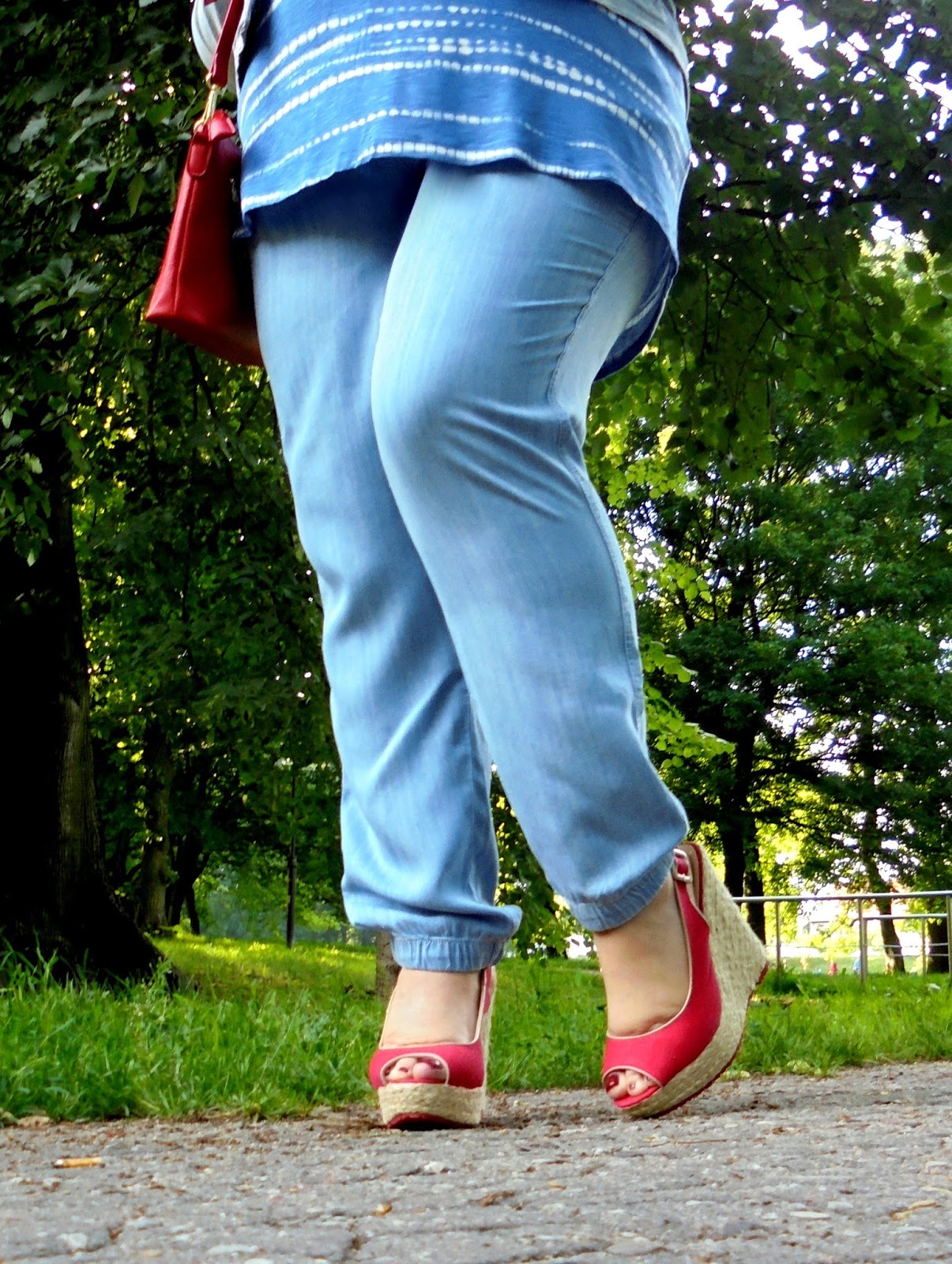 Moje dodatki to - torebka Christian Lacroix oraz buty na koturnie CCC.