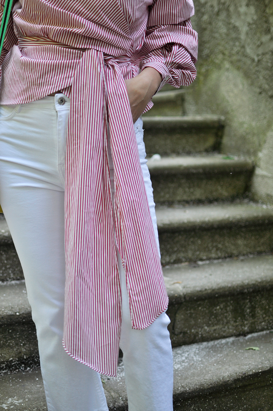 Zoom na ramiona, bufiaste rękawy, asymetria i wiązania w talii- takie elementy zdominowały wybiegi Marca Jacobsa, Valentino, Dolce & Gabbana, Gucci czy Balenciaga. Tym samym koszula, którą prezentuję Wam na zdjęciach stała się niekrytym bestsellerem. Z pozoru wydawać by się mogło, że zbyt wiele się tu dzieje, ale czyż nie o to w modzie chodzi? Dzięki jej złożoności, można nosić ją na wiele sposobów, a za każdym razem wygląda wyjątkowo. Bufiaste rękawy przywodzą na myśl dawne suknie dworskich dam, symbolizując tym samym klasę, szyk i co więcej romantyzm? Wiązanie w talii za to ukazuje silną, nowoczesną kobietę, którą staje się dziś coraz więcej z Nas.