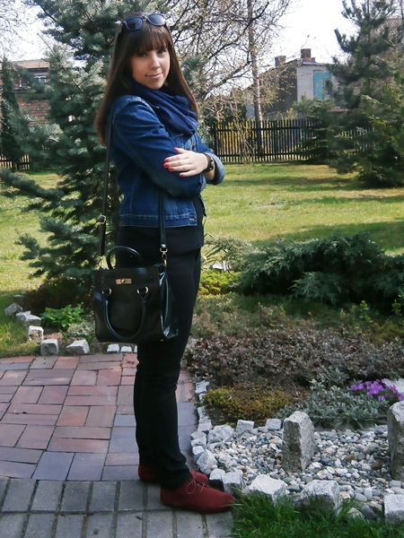 Zobacz oryginał ndz., 13/04/2014 - 17:26Tym razem zestaw zaczęłam komponować od butów. Przypomniałam sobie, że mam kupione zimą bordowe "ciżemki" jak ja to nazywam. Kupiłam bo były tanie, a jesienią miałam "fazę" na bordowy. Teraz mi raczej przeszło, ale buty są fajne i wygodne. A do tego za jedyne 34zł :)