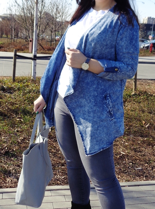 Zobacz oryginał ndz., 02/04/2017 - 21:36Bardzo rzadko noszę dżinsy. Nawet w dni wolne od pracy, do której ubieram się elegancko. Mam zawsze jedną parę czarnych i zwykłe granatowe, często z szeroką nogawką. Niedawno jednak skusiłam się na coś, co zawsze było moim sekretnym marzeniem - szare rurki :)