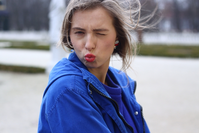 Śmiało się powtórzę: dobrze mi w odcieniach niebieskiego. Mało skromne stwierdzenie, ale rzeczywiste, co się będę oszukiwać. Tak naprawdę, niesamowicie ważne jest to, aby każda z nas wiedziała w jakich kolorach czuje się najlepiej, mało tego, najlepiej też wygląda. Dobór odpowiednich kolorów, jest równie ważny, jak dobór kroju danego ubrania do sylwetki. Posiadanie takiej "wiedzy" daje nam: a) szybszy zakup. Wiemy na jakich kolorach skupić uwagę, a jakie sobie odpuścić (zupełnie jak z krojami). Nie latamy po sklepie jak szalone, lądując w przymierzalni z sześcioma takimi samymi bluzkami w kolorach tęczy. Przykład: ostatnio na wojażach po lumpeksach 6/8 rzeczy, jakie kupiłam, były w odcieniach niebieskiego (ręka sama sięga!), dwie pozostałe: biel i pomarańcz; b) ominięcie wpadki. Dobór koloru ubrań, polega mniej więcej na tym samym co na przykład dobór szminki. Jakkolwiek by nam się podobał, gdy czujemy, że w nim znikamy, tak jak szminka ginie na twarzy, warto odłożyć i poszukać czegoś w innym odcieniu (ja mam tak z beżem). Dobranie złego koloru może wpłynąć na fakt, że będziemy wyglądać niekorzystnie i trzeba mieć to na uwadze. To takie skromne rady z mojej strony. Niektórym mogą wydać się zbędnymi wypocinami, niektórym za to mogą otworzyć nieco oczy ;)