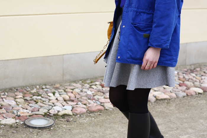 Ola: sweter, kurtka sh | spódnica Preska | kalosze Allegro | torebka Monnari | kolczyki House of Mima | pierścionki H&M