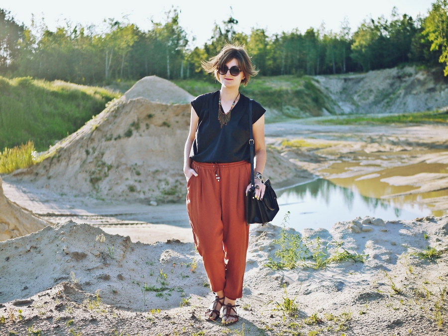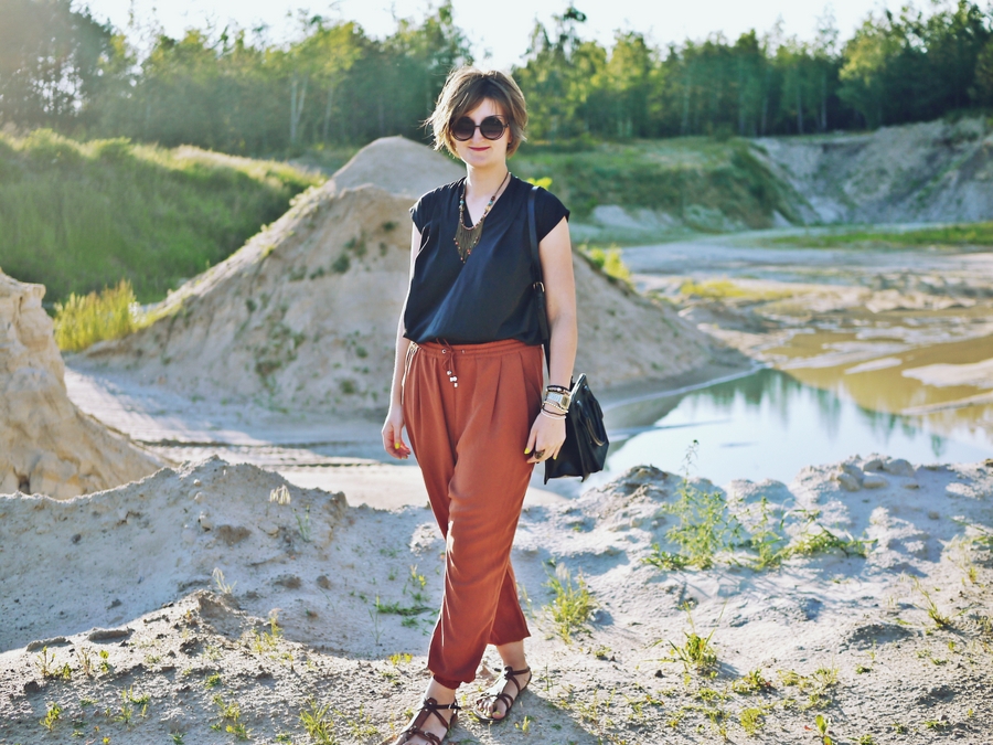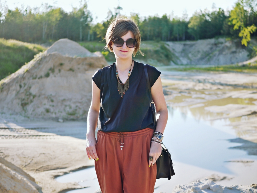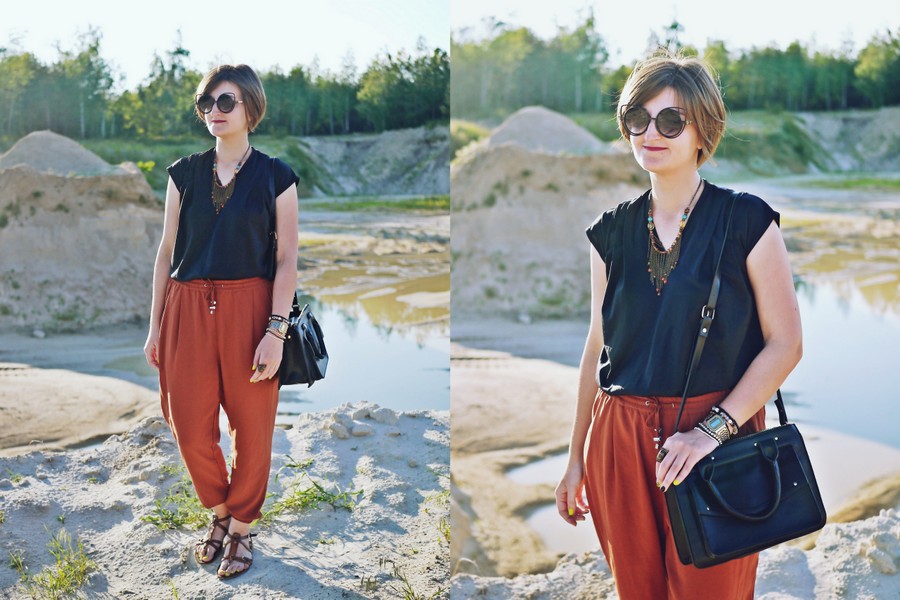 spodnie- H&M // bluzka- SH // torebka- Mohito // buty- deichmann