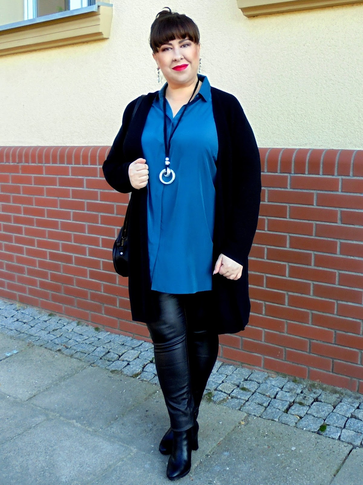 Koszula w kolorze morskim i rurki z eko skóry - mój jesienny look z marką CELLBES
