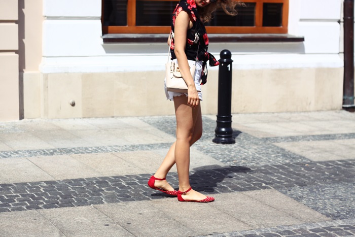 Chyba mam coś z sadystki, lubię znęcać się nad ubraniami, ścinać je i przerabiać. W zasadzie wychodzi im to na dobre, a i ja mam z nich więcej pożytku i po prostu przyjemności z ich noszenia. Nieciekawa koszula, której kiedyś rękawy nie dość,że były dłuuuuuuugie, to jeszcze na dodatek rozkloszowane i falbaniaste, teraz wygląda zupełnie inaczej, a spodenki, no cóż, czasami wolę pobawić się w krawcową i zaoszczędzić na kupnie szortów w sieciówkach, co polecam każdemu. Kolejny dowód na miłość do małych torebek- beżowa mini, która od razu wpadła mi w oko.