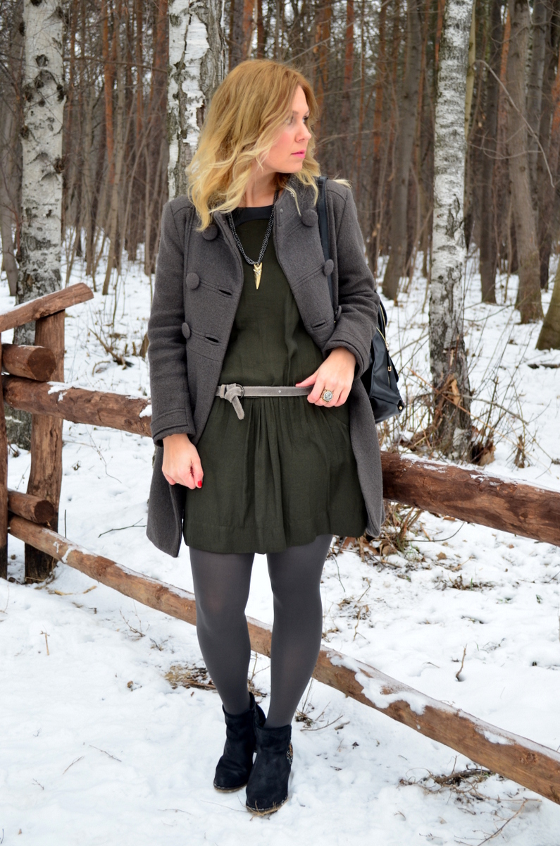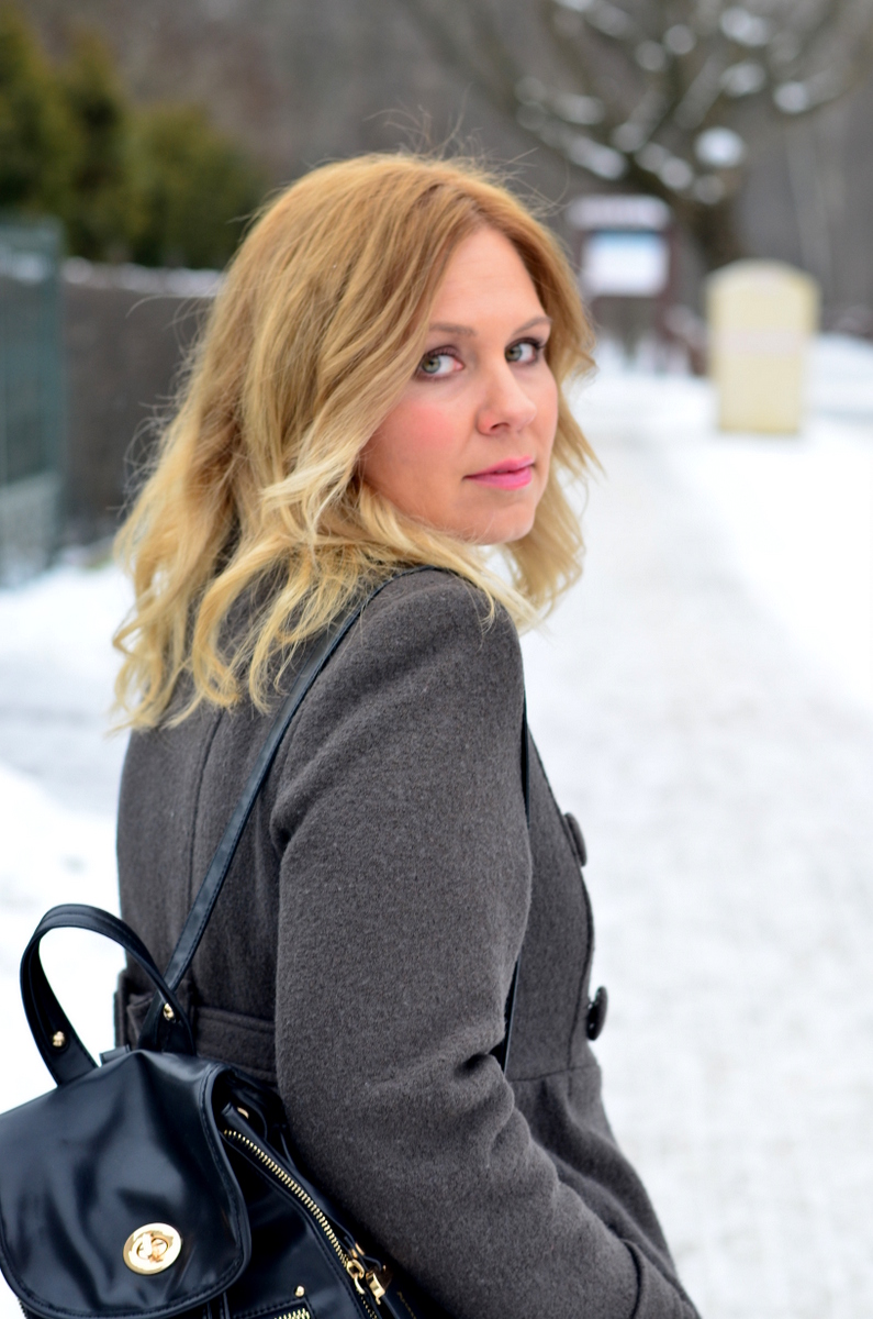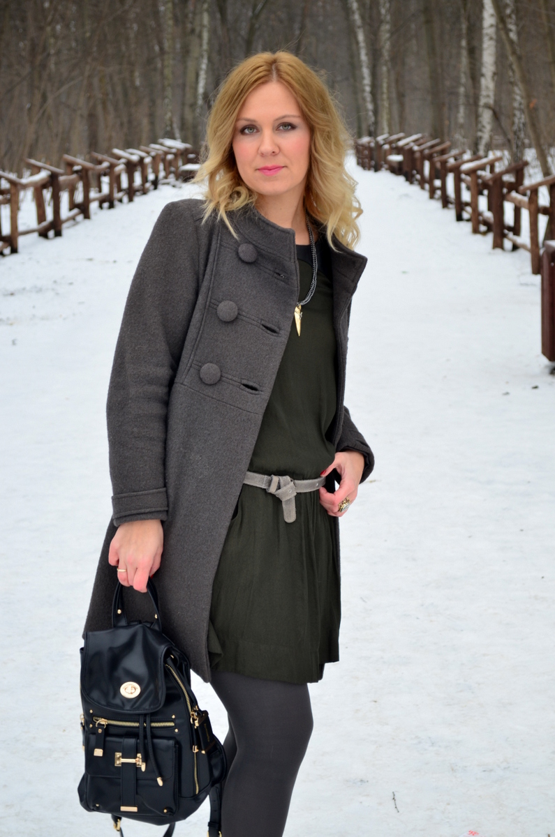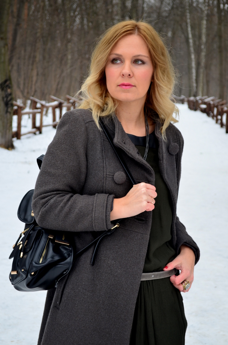 Zobacz oryginał czw., 21/02/2013 - 22:21 Zakochałam się w trochę niekobiecych plecakach, może dlatego, że lubię wygodę. Nadają charakteru każdej stylizacji. Podobają mi się i te plecione w stylu boho i w kwiecisty print na lato. Dzisiaj prezentuję Wam plecak w eleganckim stylu zakupiony w Accessorize na przecenie. Założyłam do niego wygodną sukienkę z Zary (przeceniona na 49 zł ze 199 zł) i pożyczony od Mamy wełniany płaszczyk z second handu za 30 zł (Zara). Sukienka bez paska była nudna więc założyłam szary, skórzany pasek z New Look. Lubię takie monochromatyczne zestawy.